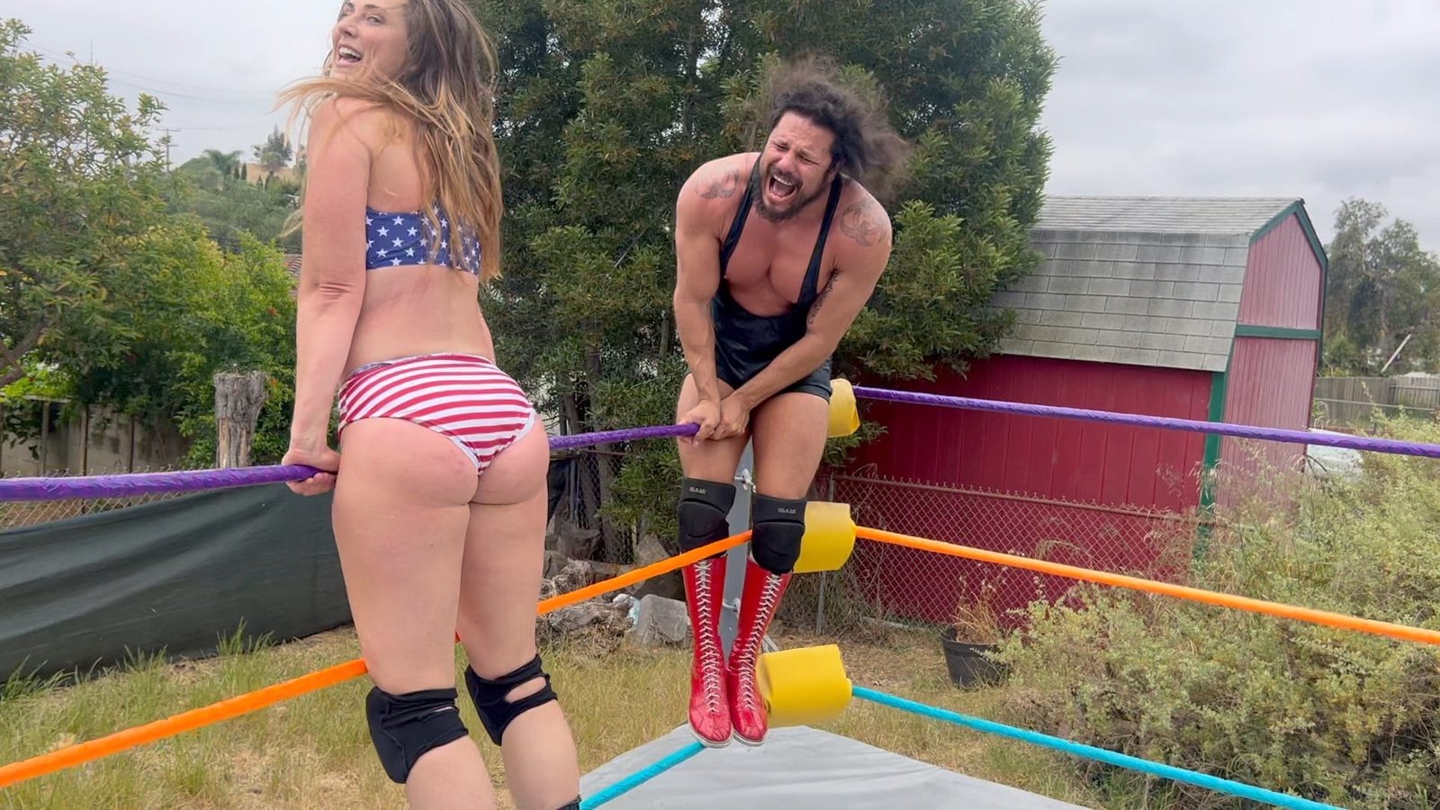 Butt Wrestling Inc has a new wrestler!  A good back and forth between Beckie and Tito with some prostyle moves and of course our greatest hits, Stinkfaces, Broncobusters, and lots of low blows! 10 min 37 sec