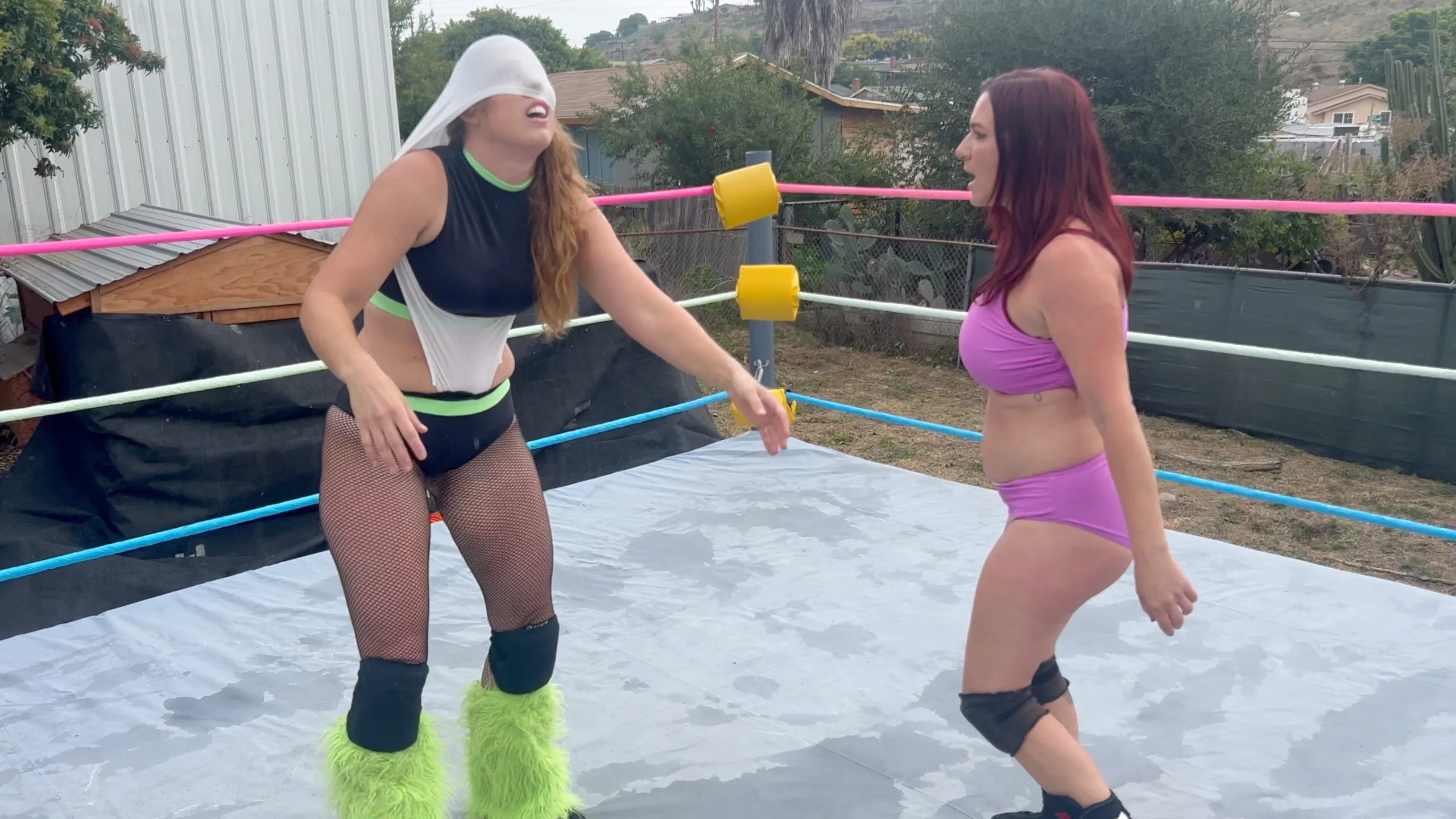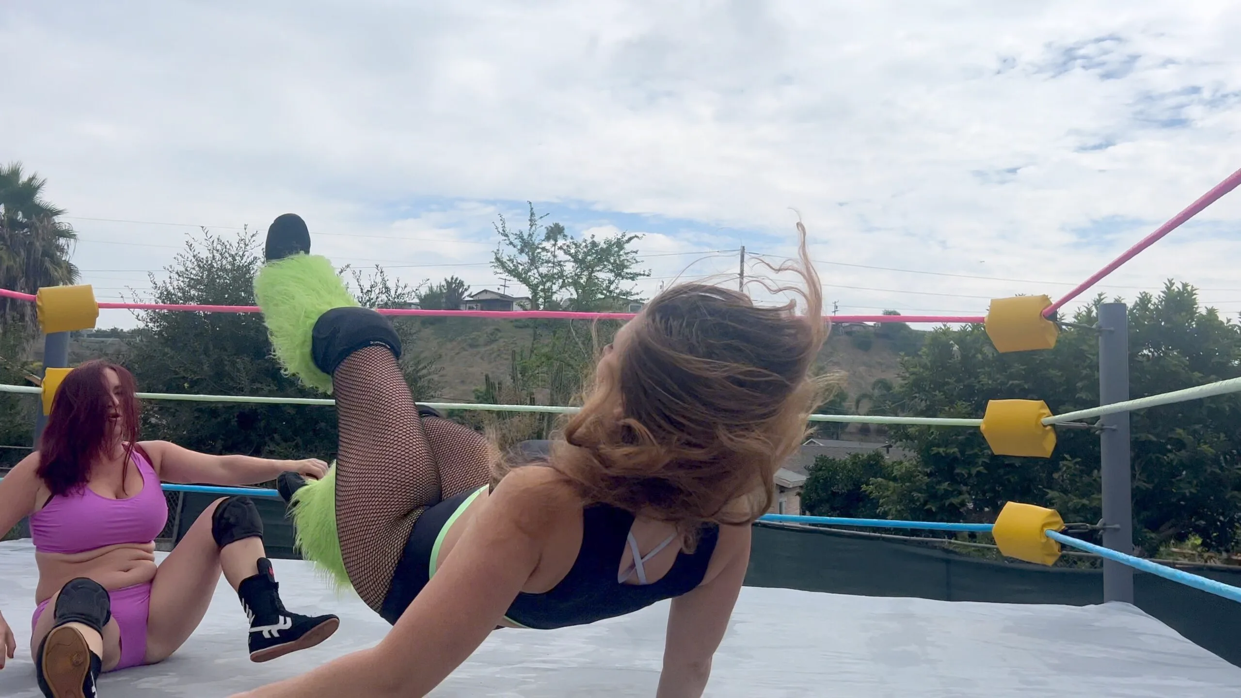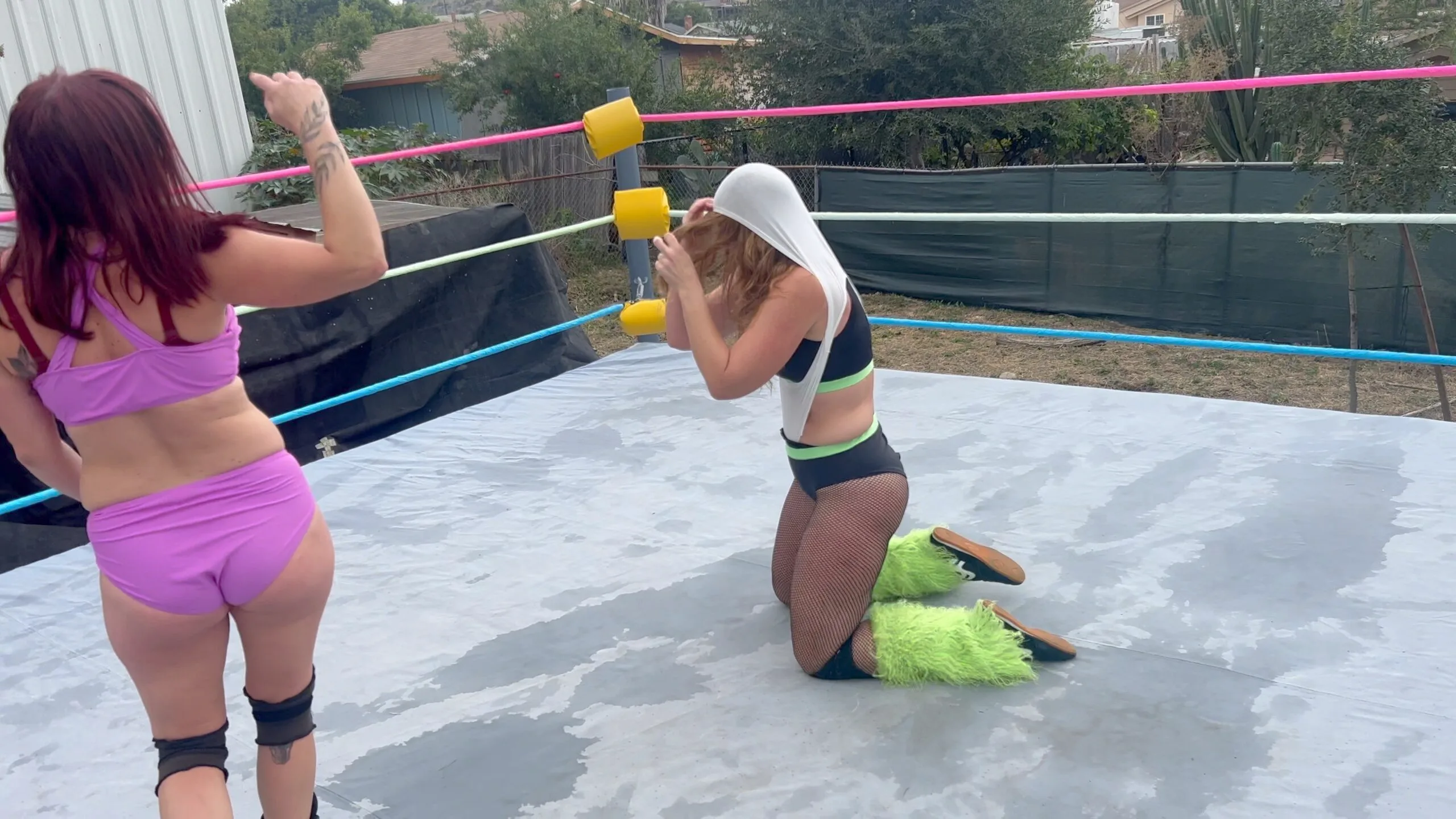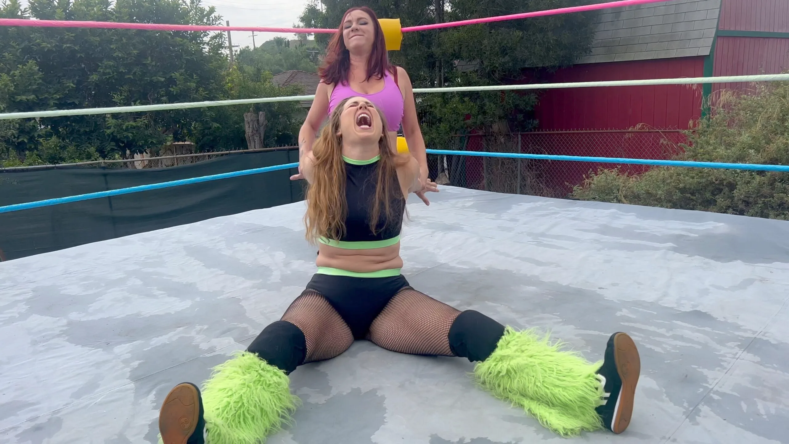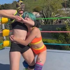 Stevie is just hanging out and checking her phone when Beckie sneaks up and attacks her!  They wrestle and until Stevie gets up on Beckie and gives her the biggest wedgie of her life; an atomic wedgie!  11 min 17 sec