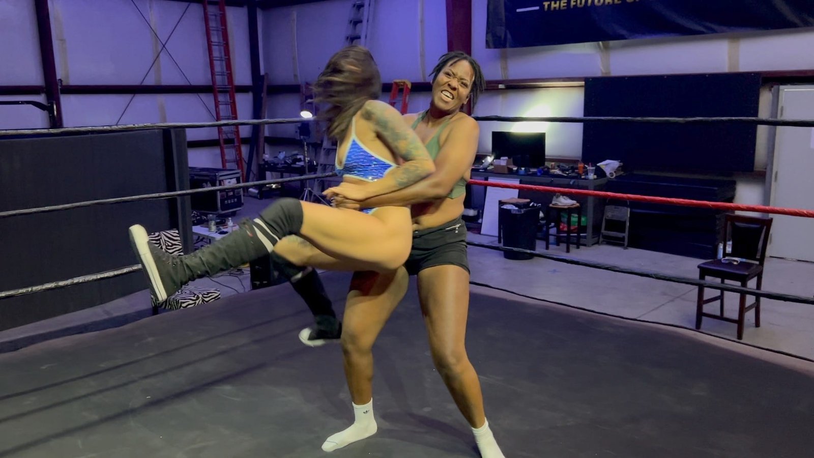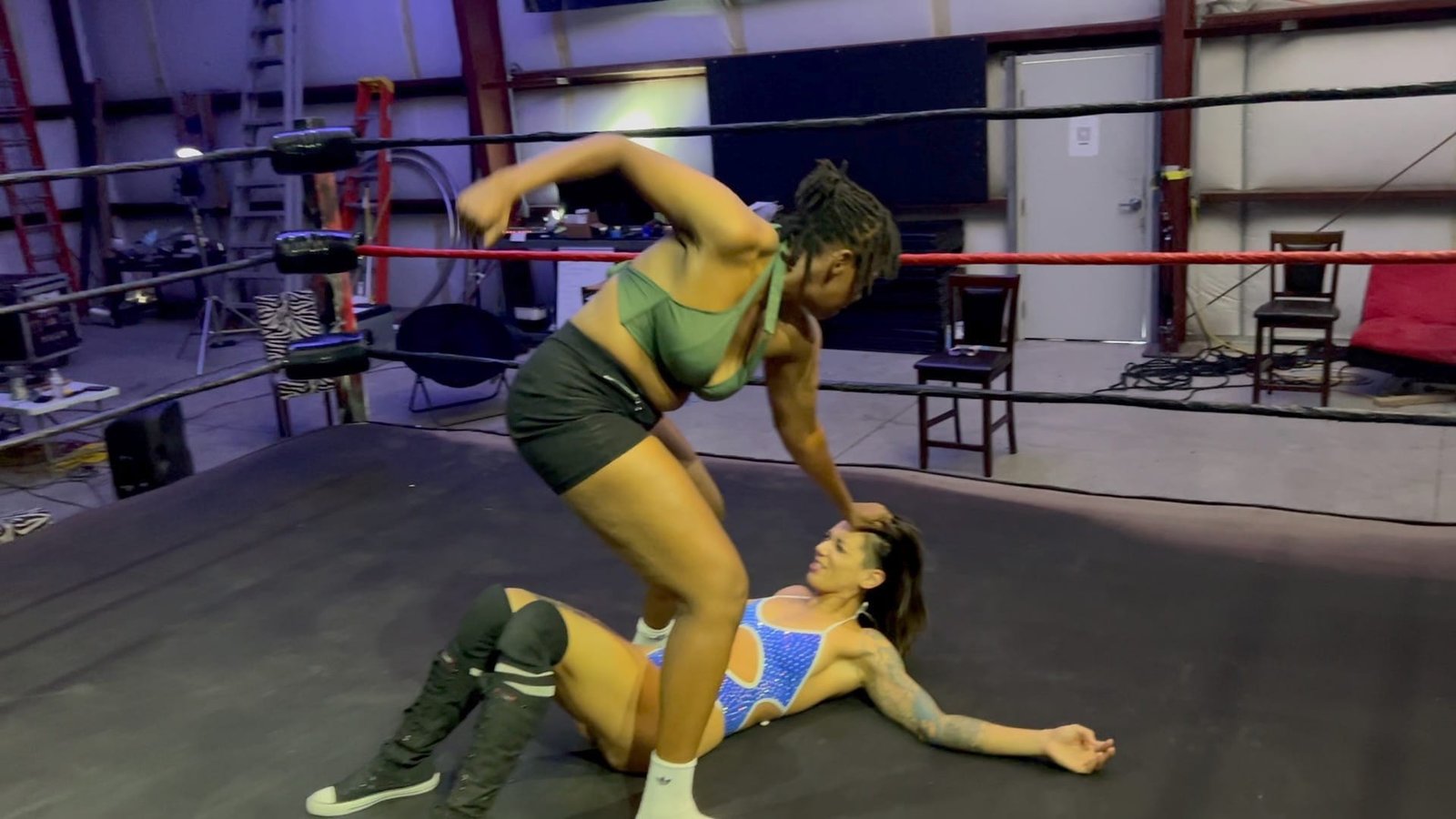 Roxy feels so cute in here sparkly thong leotard, but Beauty isn’t in the mood for cuteness and she’s ready to smack those sparkles right off Roxy! 10 min 27 sec