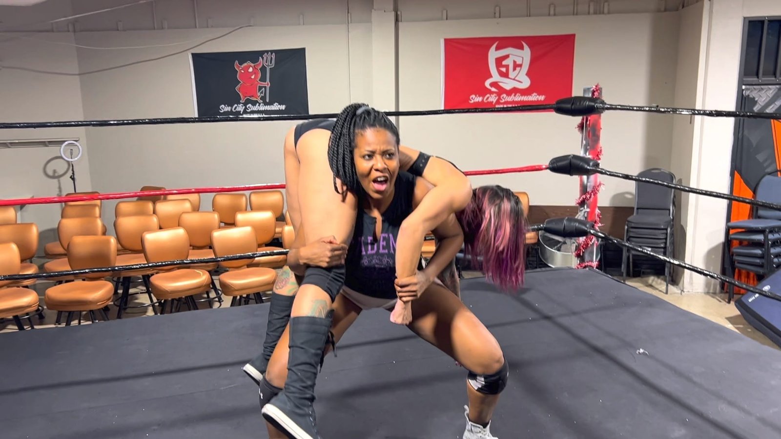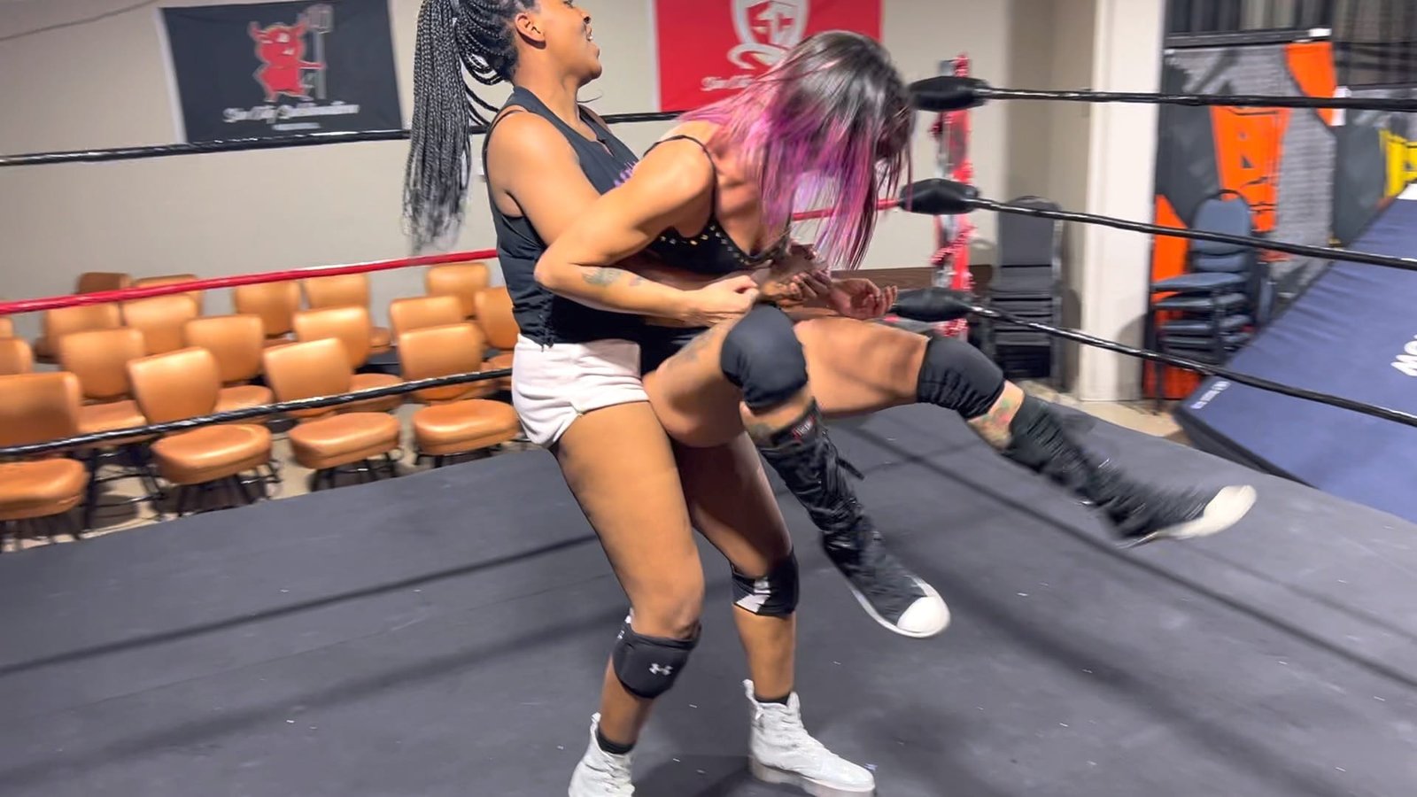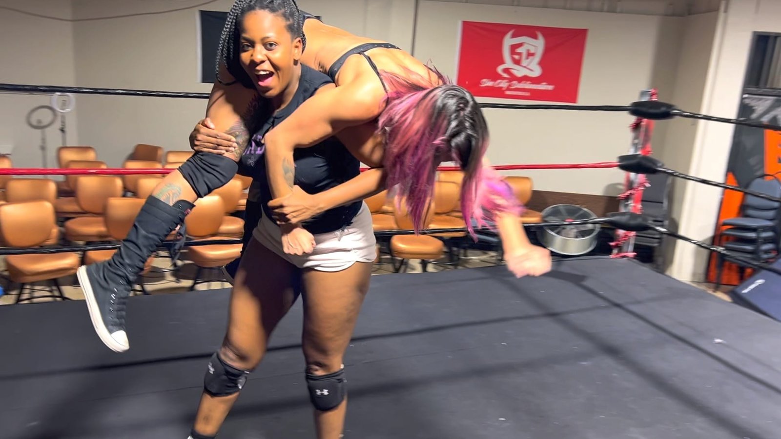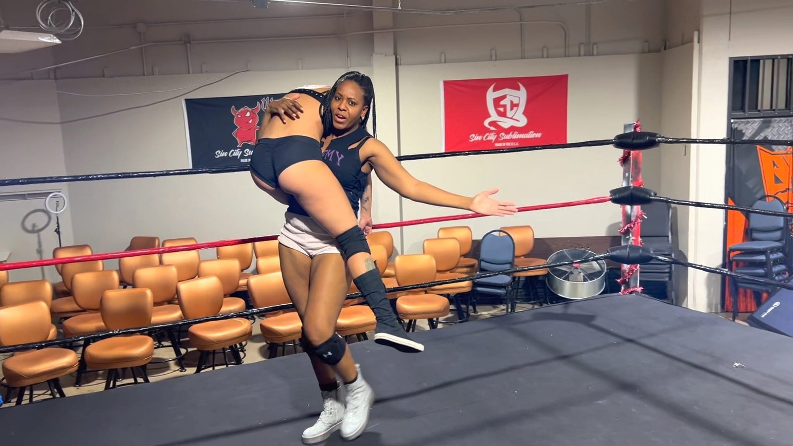 Roxi may be shorter in stature, and she may be the newest fighter at Butt Wrestling Inc, but what she lacks in size she makes up for in might.  Beauty still isn’t convinced that she can be lifted, but Roxi has a few surprises up her sleeves including some massive muscles!