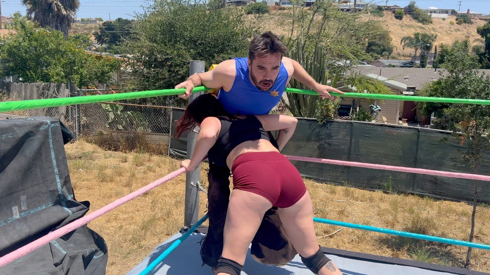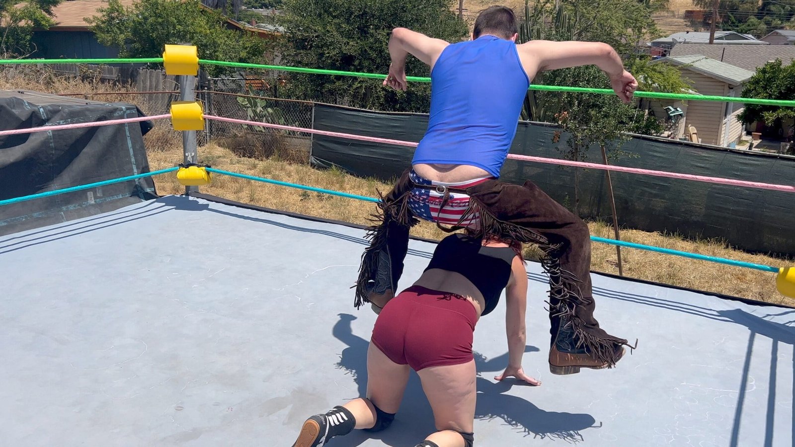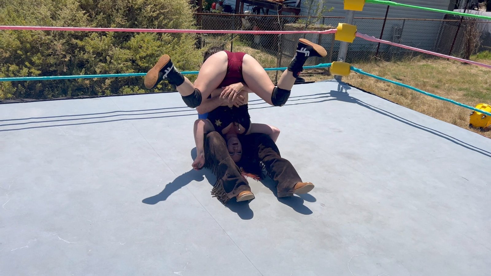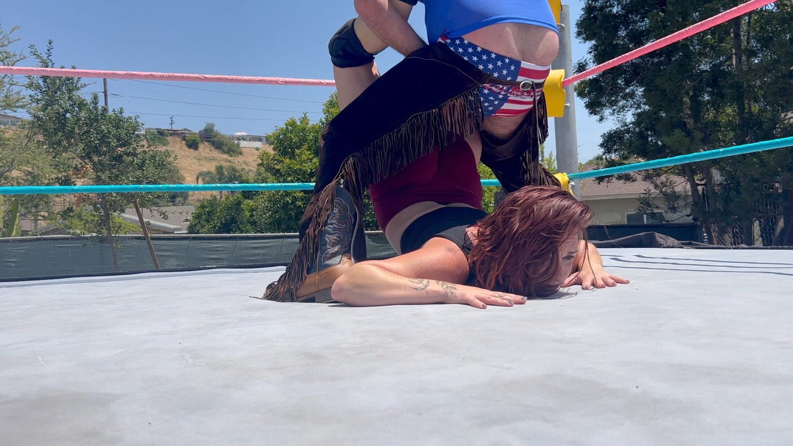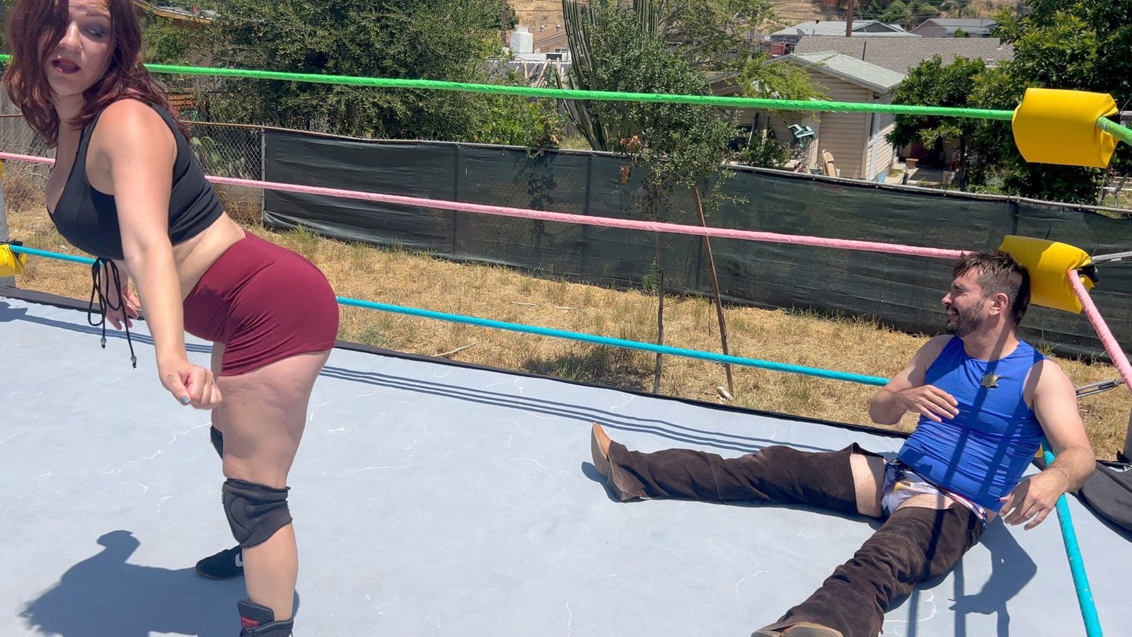 Stevie Kixx worked hard all night at the strip club, now she shows up to wrestle, with no sleep, and once again Bronco Bill is being a huge jerk! Stevie farts in his face but Bill is able to hit some pretty devastating moves in return! Who will be victorious?