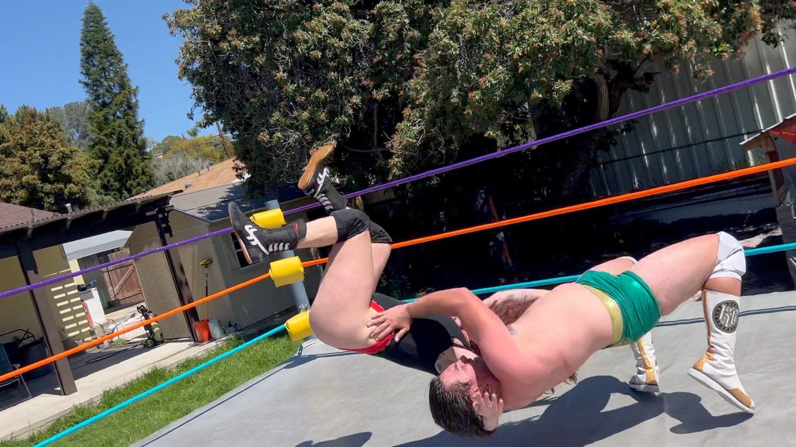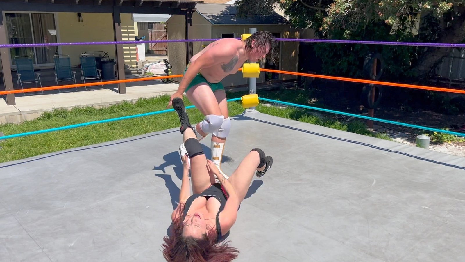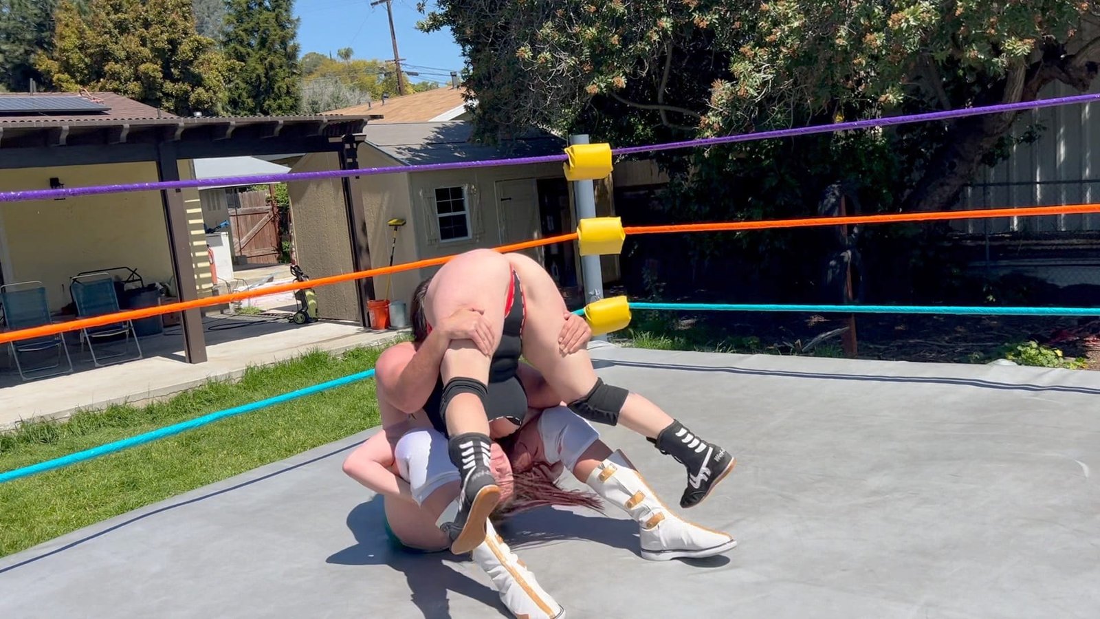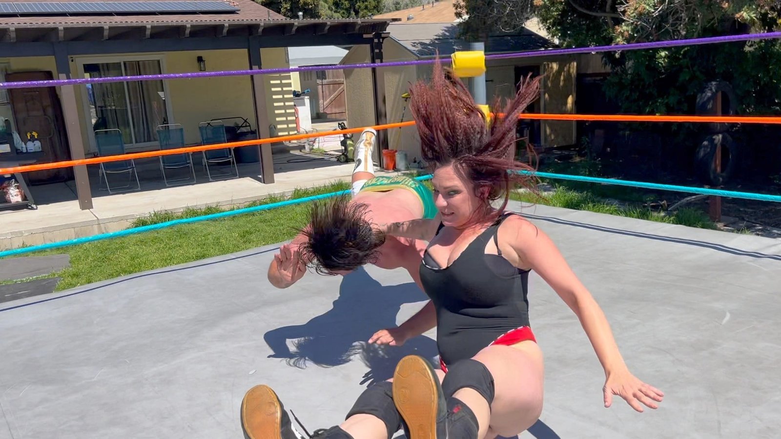 Stevie pays back Cody’s Bronco Buster with a Bronco Buster of her own. But that’s not enough! She gives herself a nice Camel Toe and gives him another brutal Bronco Buster! Then she spanks him over the ropes! Cody comes back and gives her a Piledriver, but she lkicsk out! He tries to go for another one but she farts in his face! 10 min 19 sec