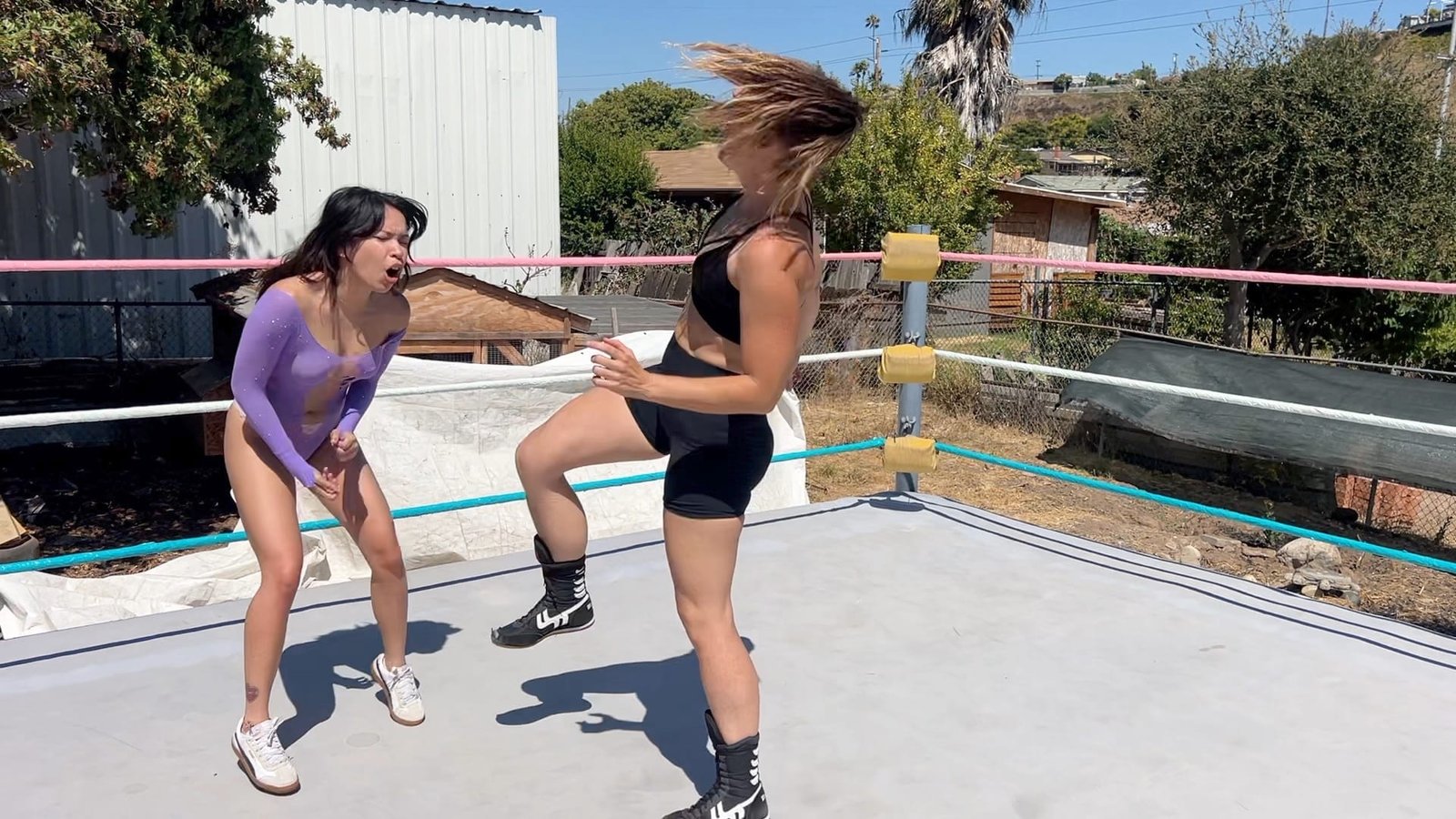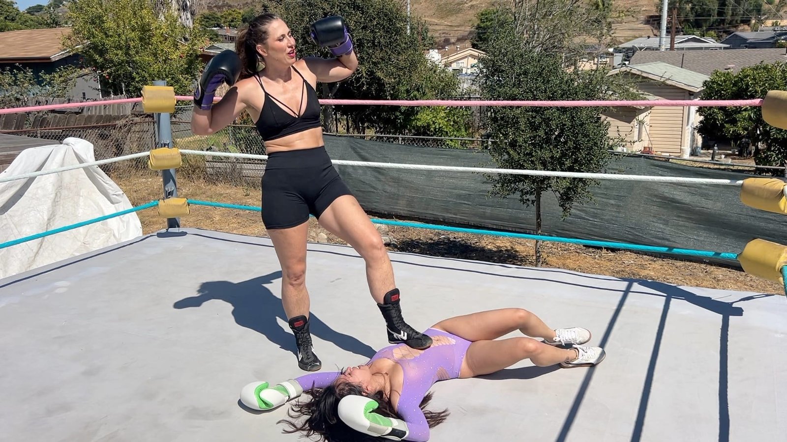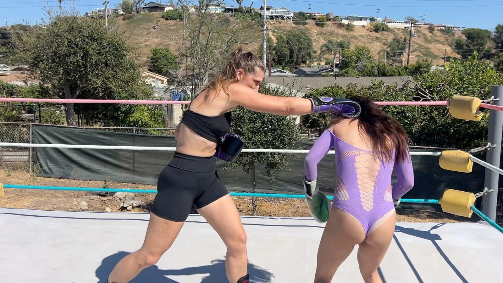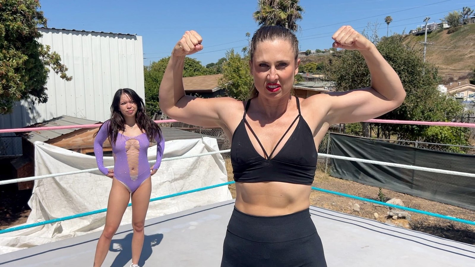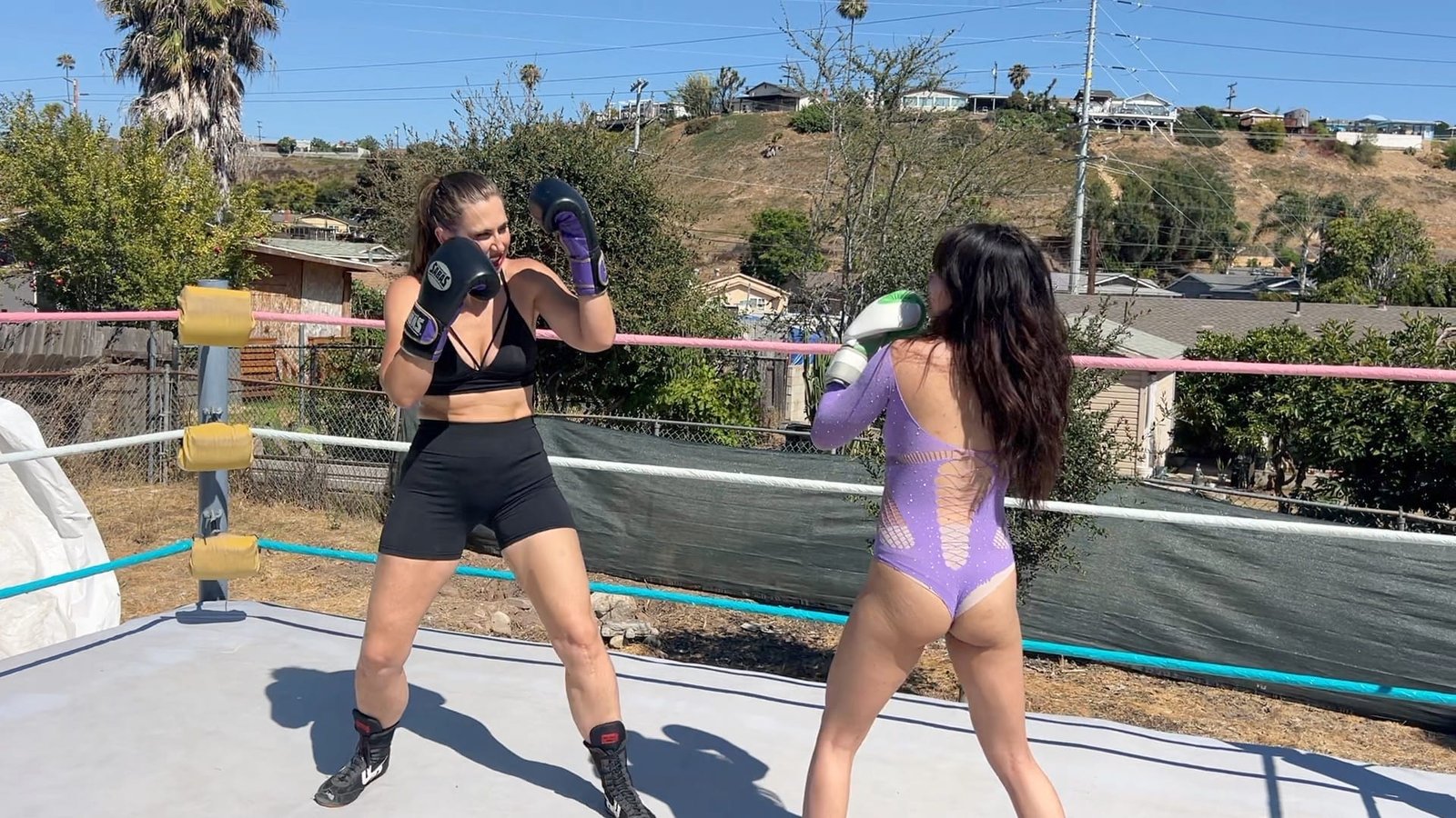 EXCLUSIVE! Nikki and Beckie battle each other in a series of 3 different competitions: dance, arm wrestling and boxing.  Needless to say the 6’2″ 180 lbs amazon dominants the petit Nikki.  This full, exclusive, version is not available anywhere else!  22 min 19 sec