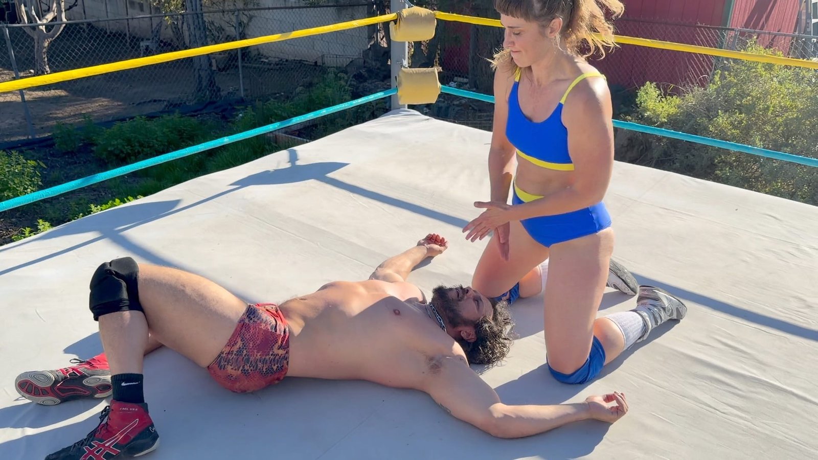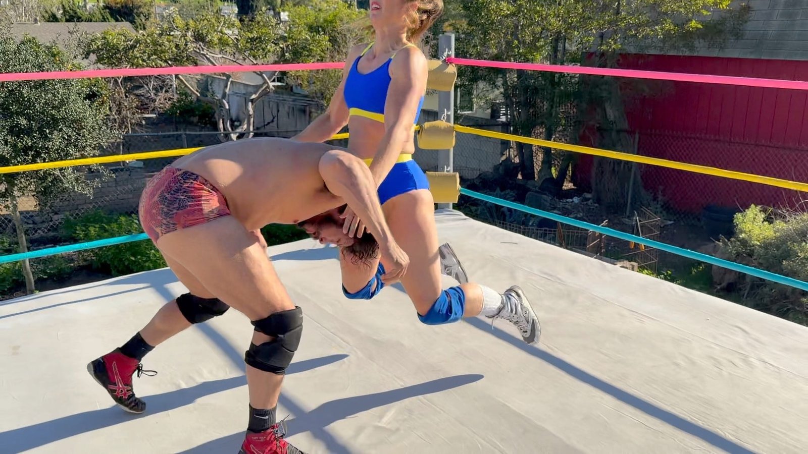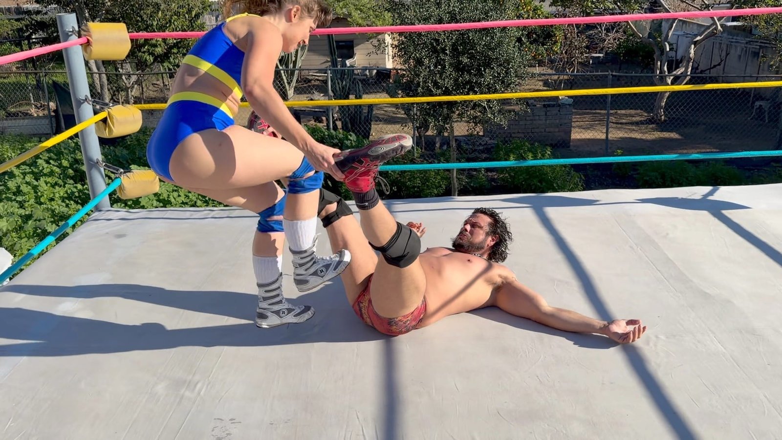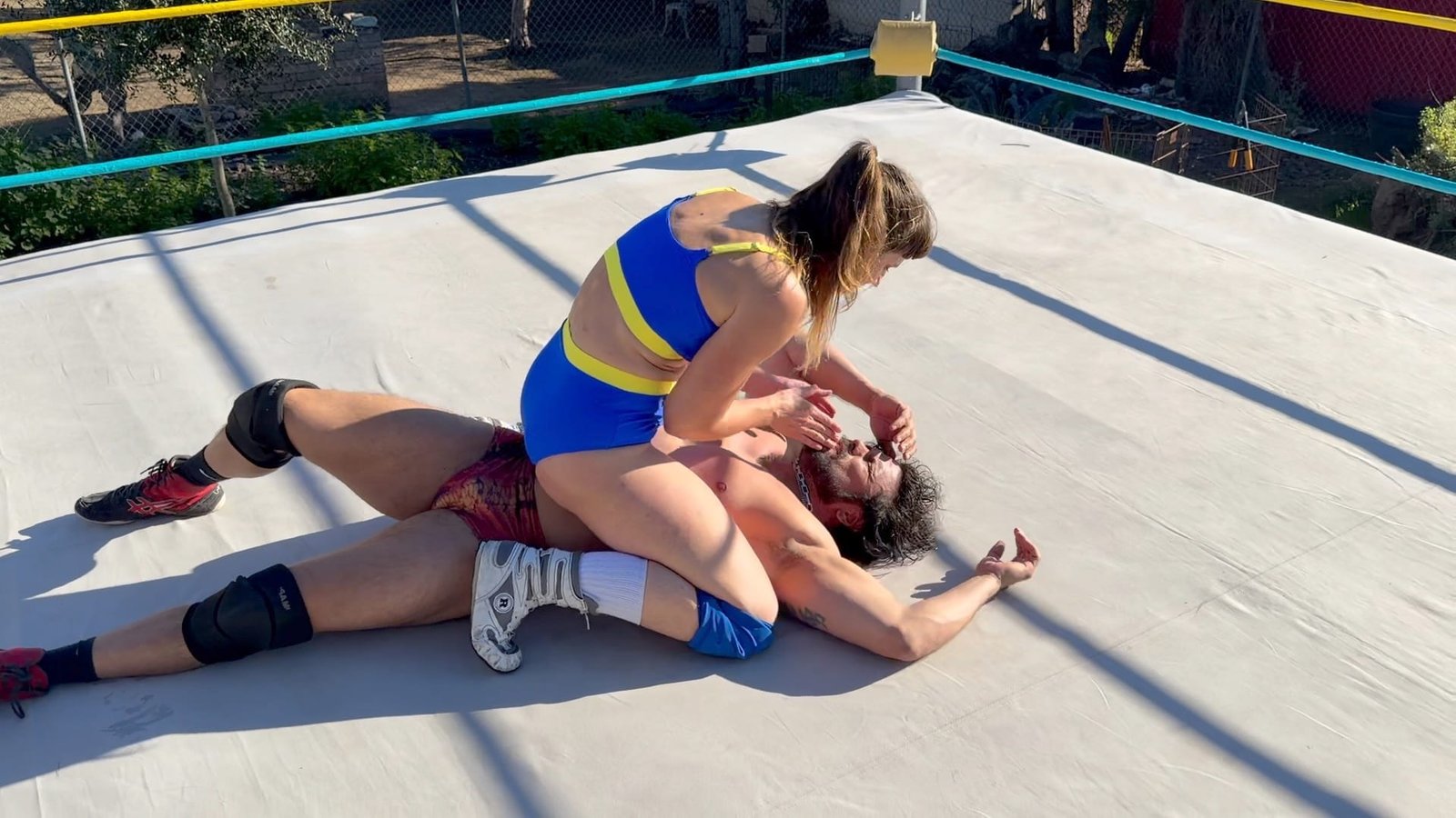 Beckie gives Tito many gyrating Pedigrees, tight Bronco Busters, low Blows and a Piledriver, all the while telling him to “SUCK IT!” 15 min 11 sec