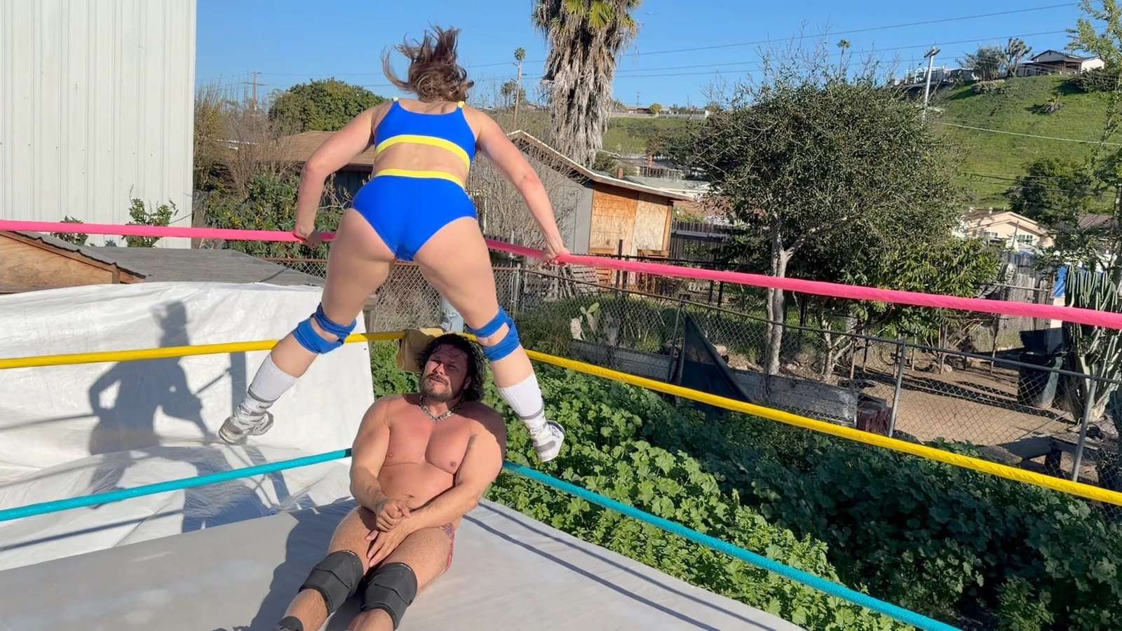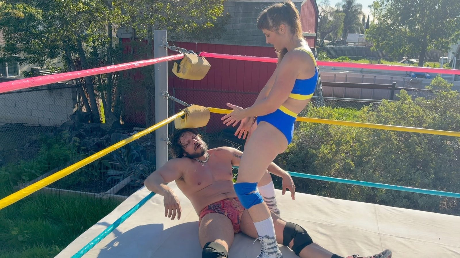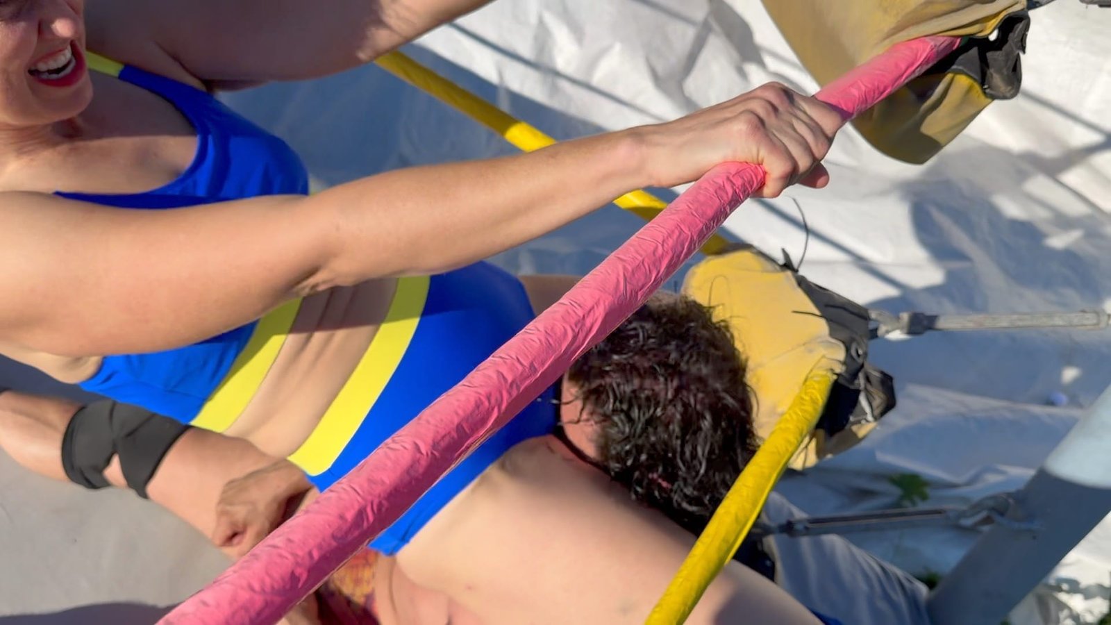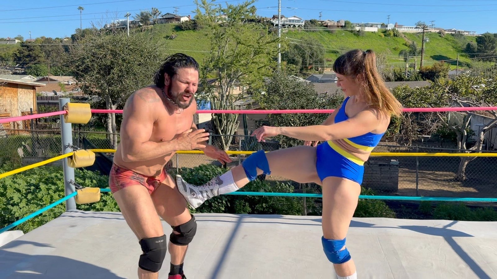 Beckie gives Tito many gyrating Pedigrees, tight Bronco Busters, low Blows and a Piledriver, all the while telling him to “SUCK IT!” 15 min 11 sec