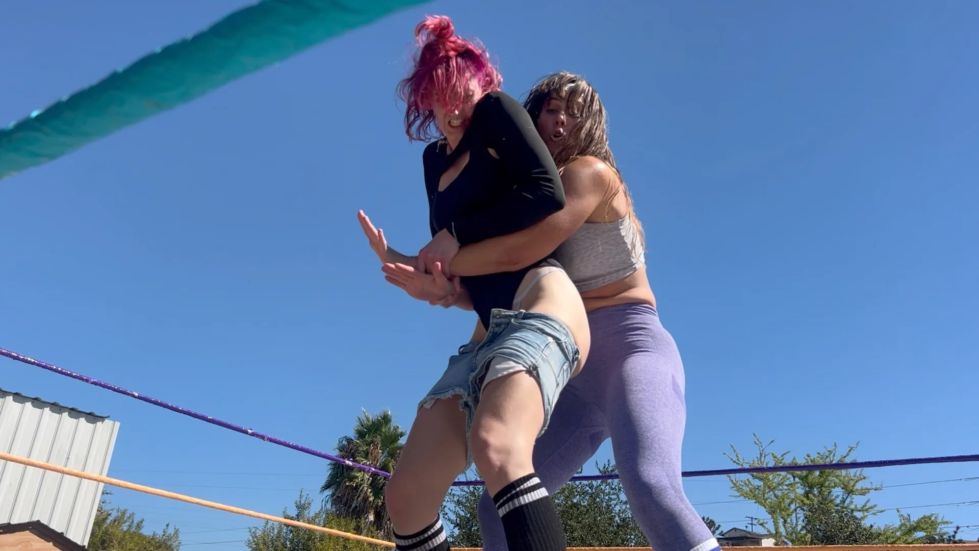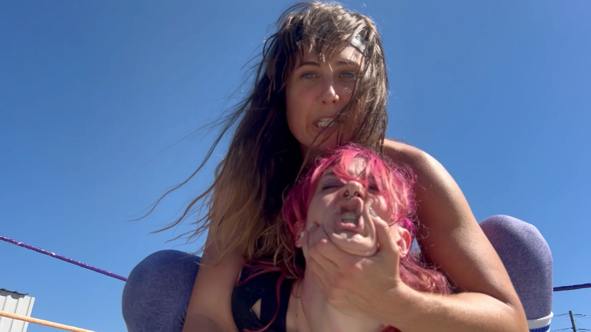 Beckie has already beaten Stevie and Morrigan by getting 5 Stinkfaces first!  Now she wants to beat Tessa Teaze with a full, bare bottom Stinkface!  10 min 14 sec