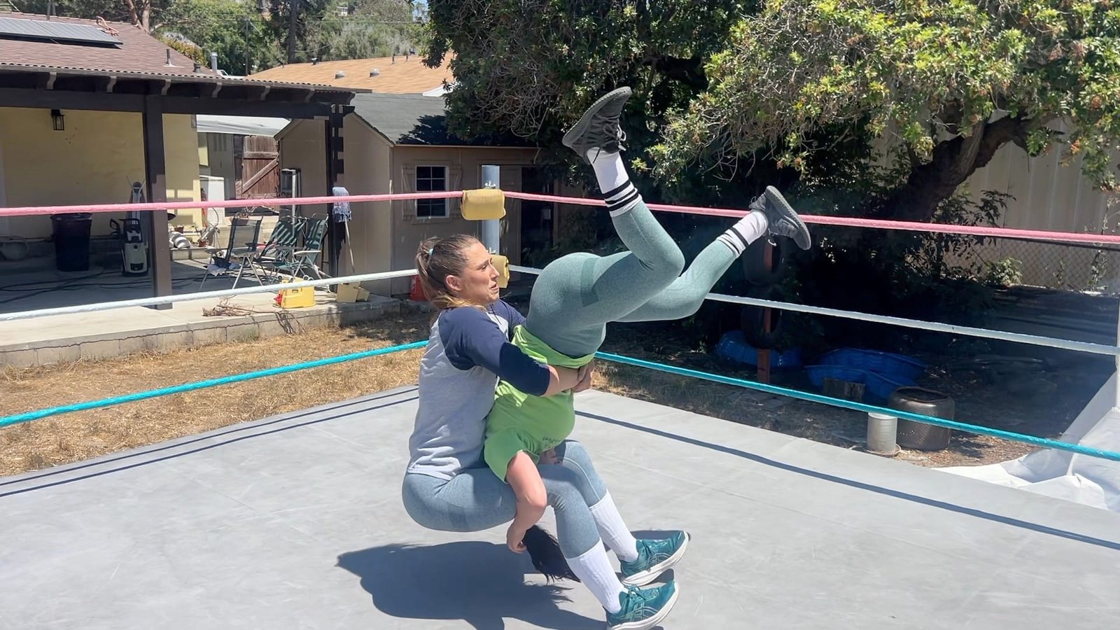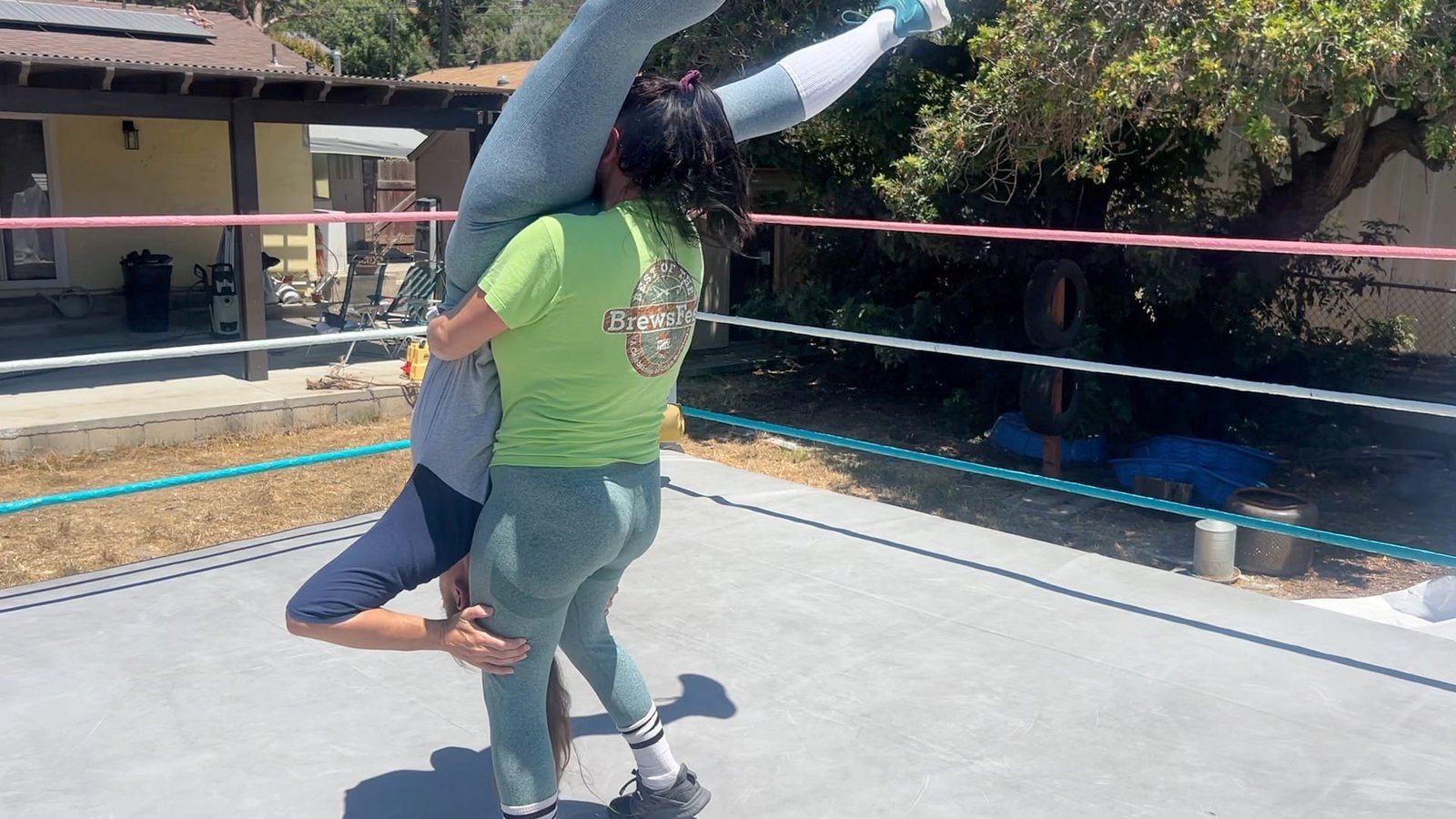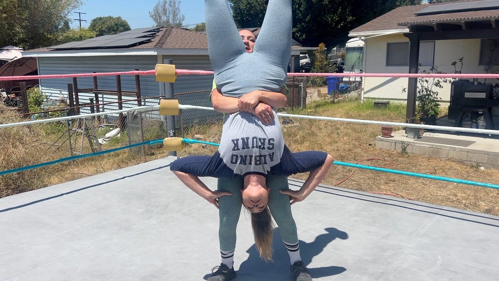 Once again, Stevie and Beckie are in gym class, arguing over who can give and take Piledrivers in the sexiest way because they both have a crush on the same guy.  They take turns shoving the other’s head between their thighs, then grinding and humping on their head and shoulders, while also playing with their butt and spanking them.  10 min 56 sec