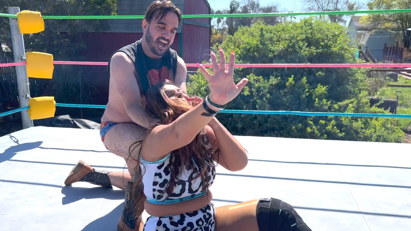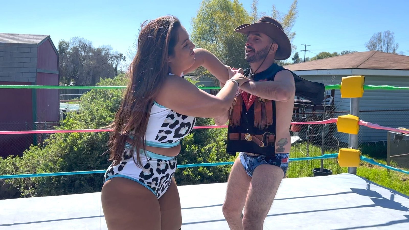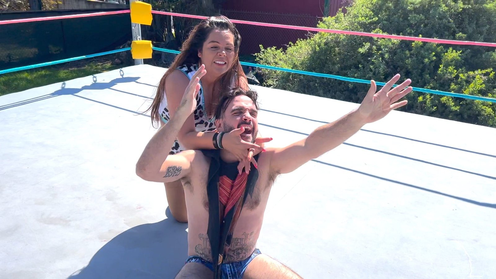 Nadia Sapphire and Bronco Bill have both won one match each.  This is the final match in the series!  Either one could win!