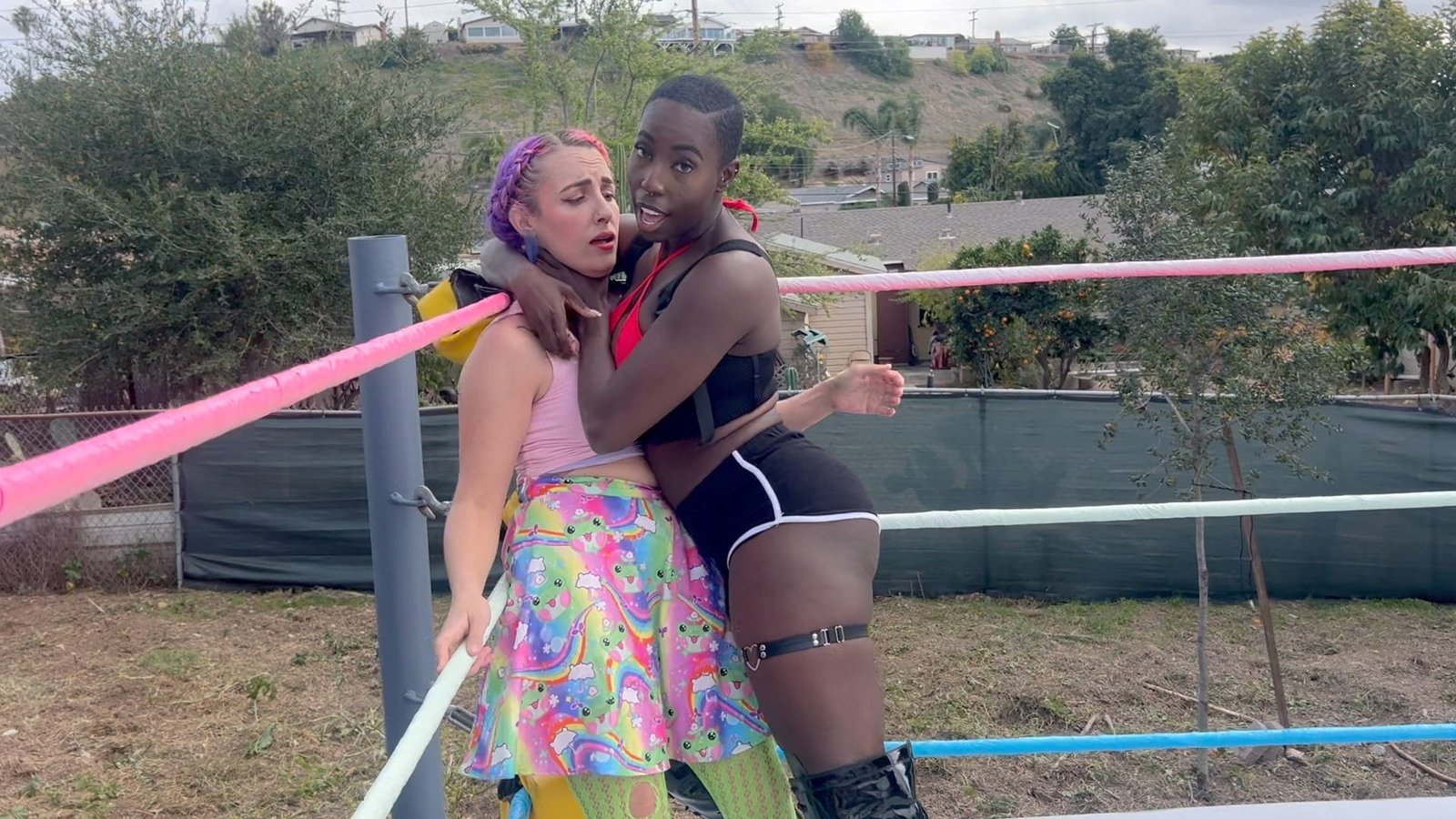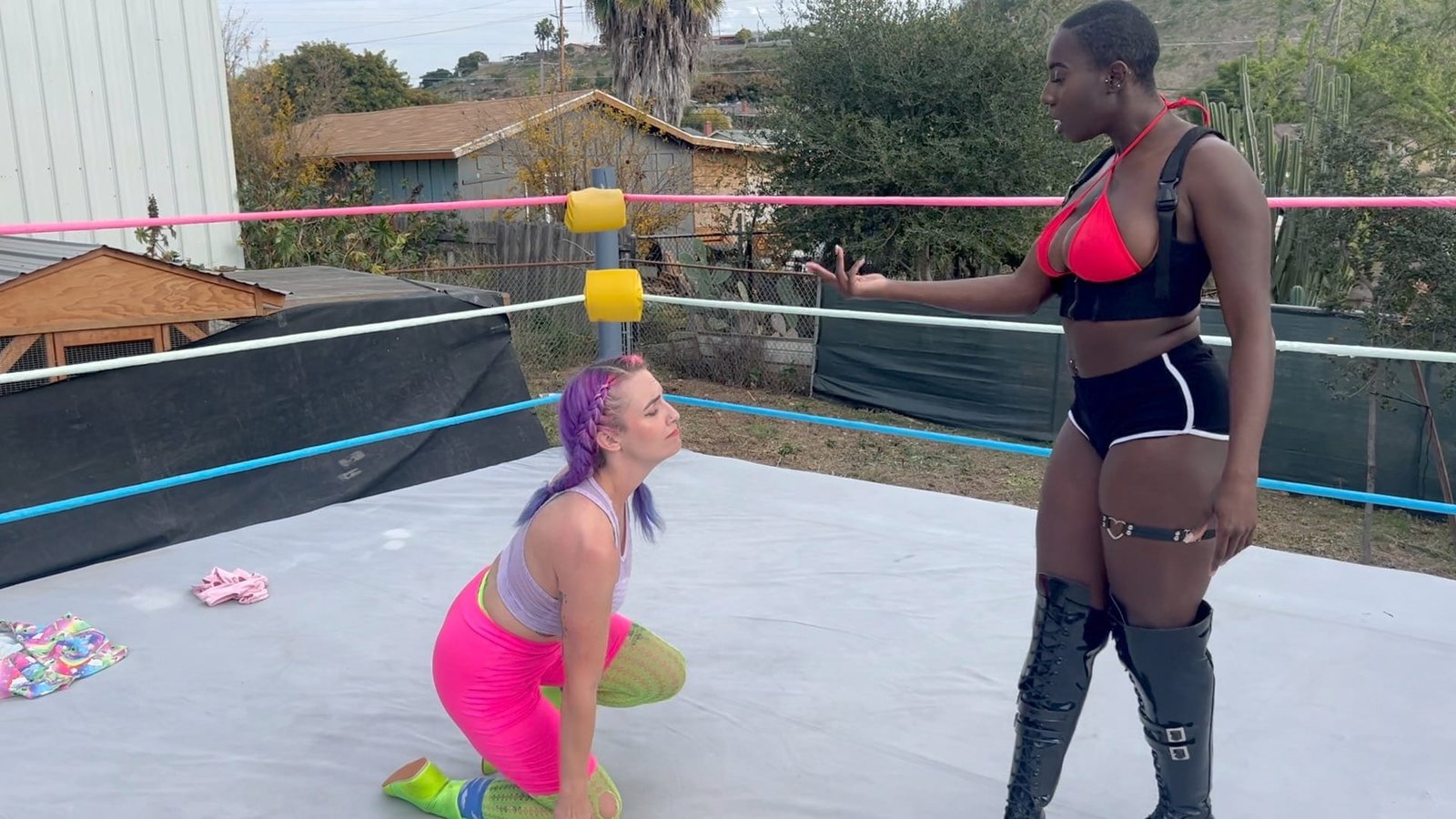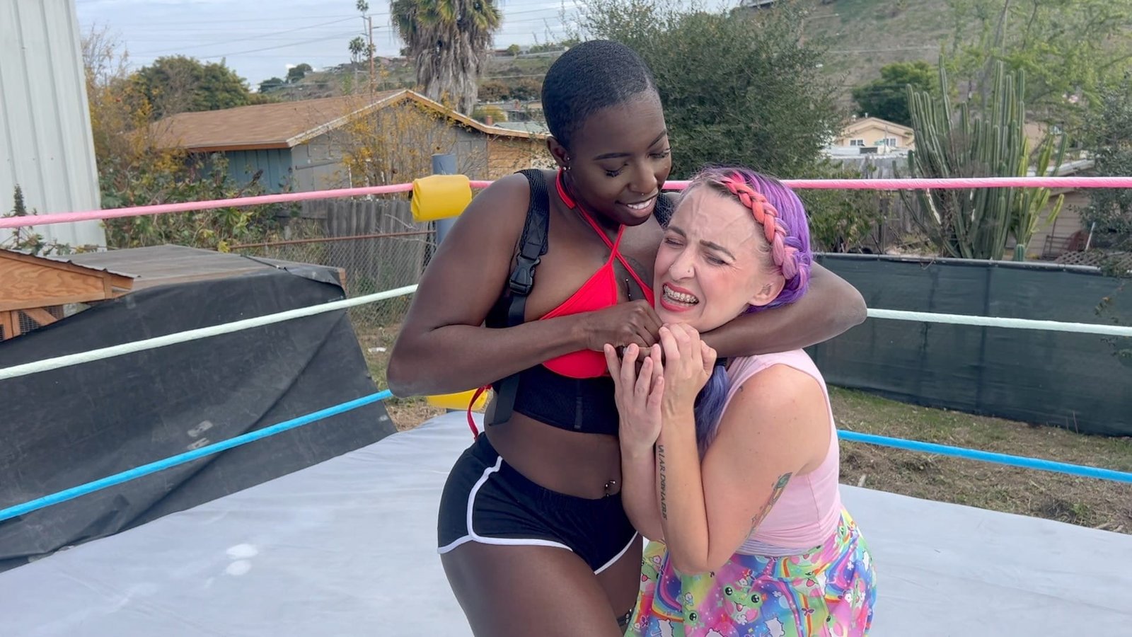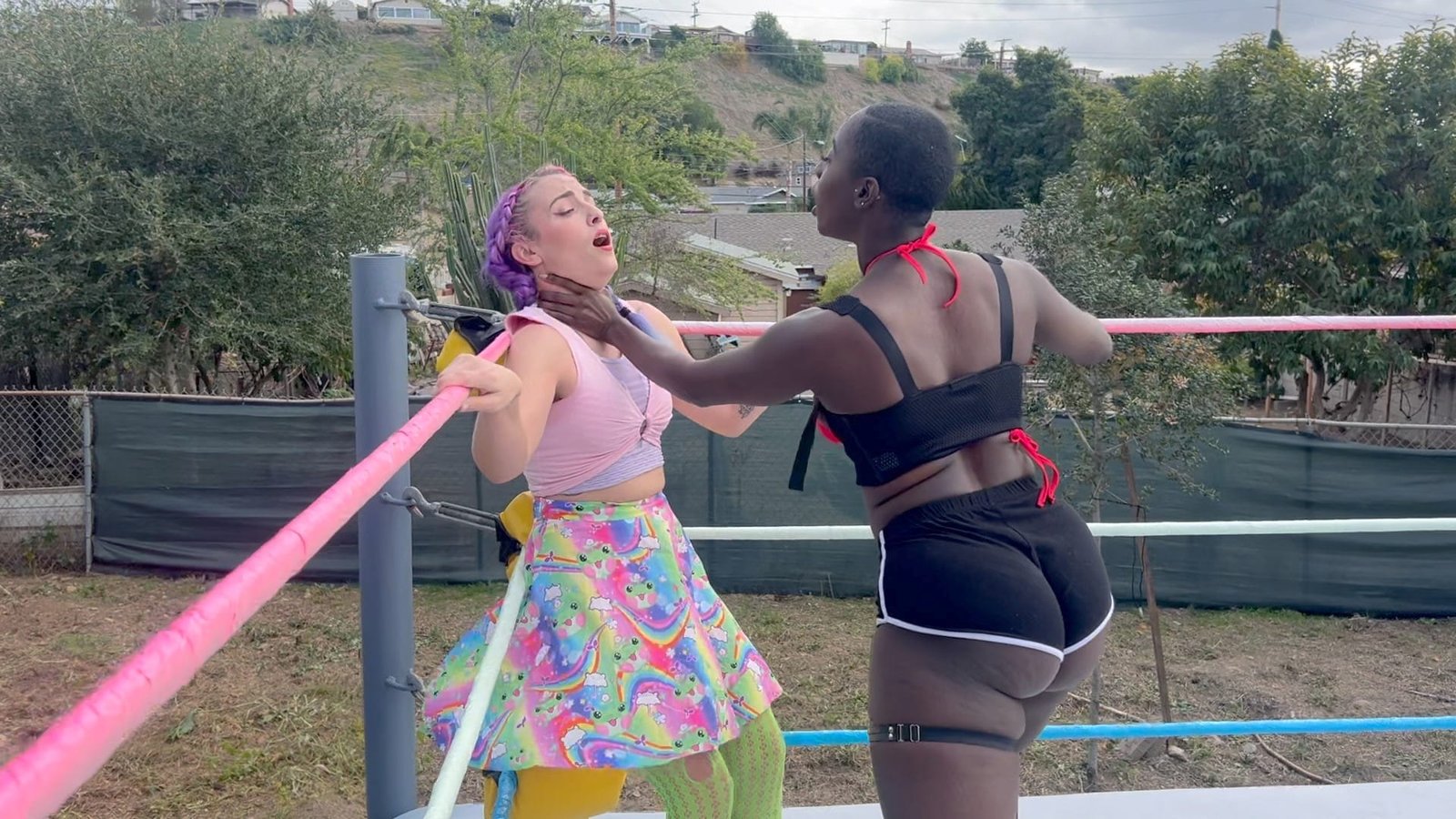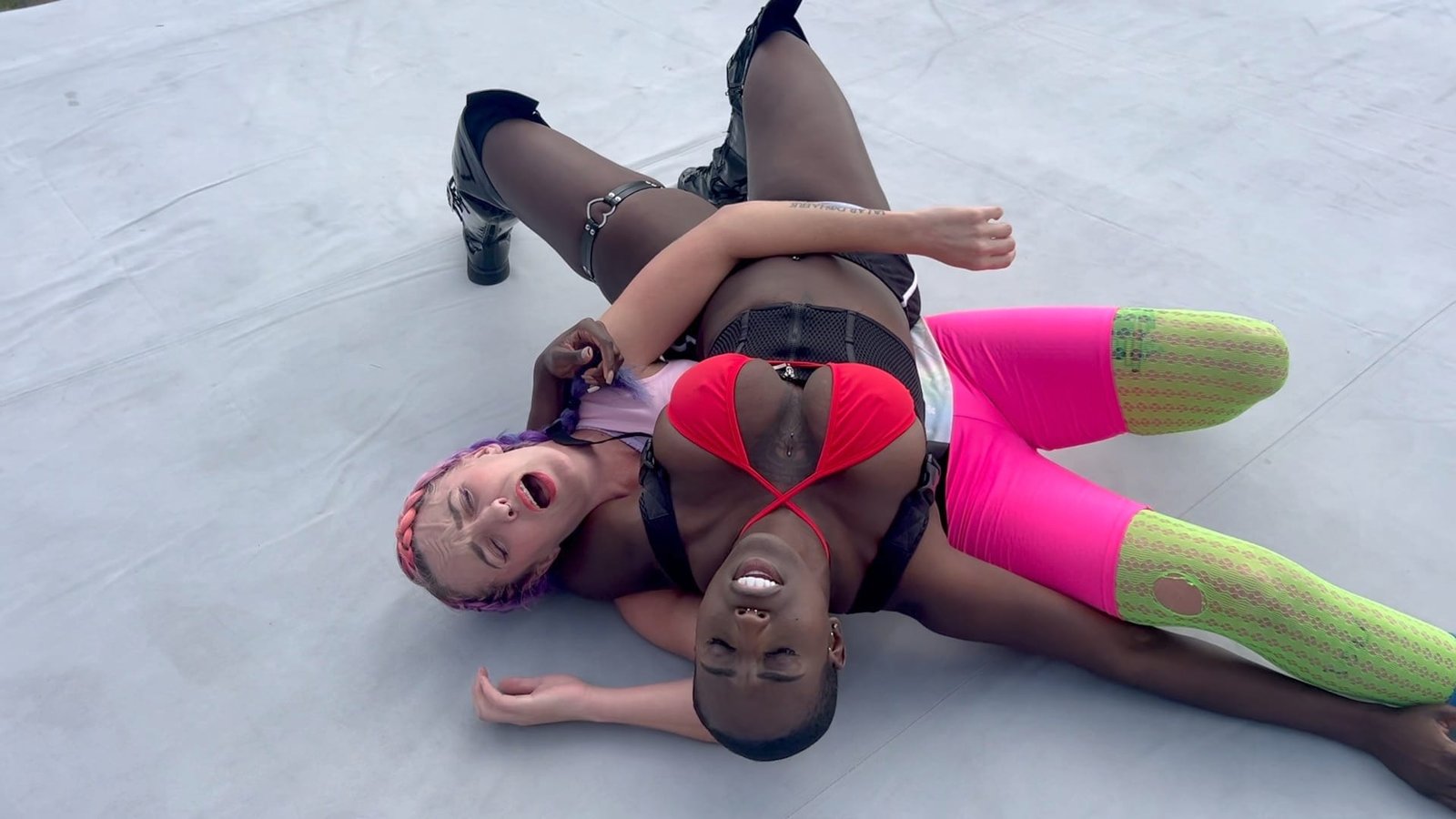 Goddess Nyx loves to play with her prey in this domination match with Morrigan Moxie.  Morrigan is a jobber who likes the pain but can she stand all the choking? 10 min 9 sec