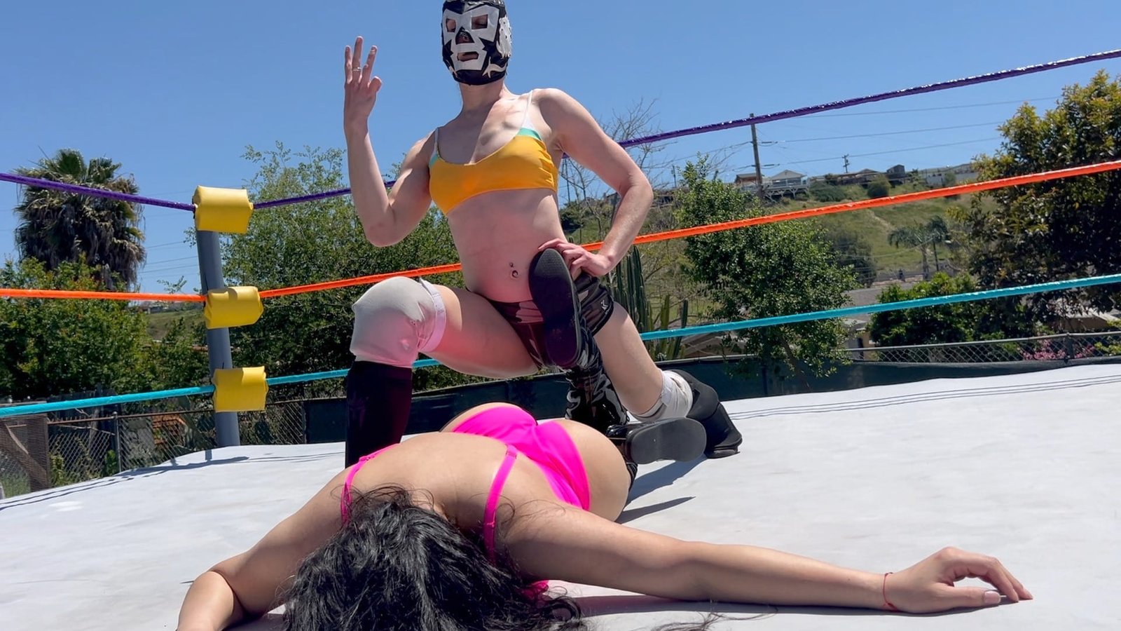 Tessa and Mariah trade KOs, and when Mariah gets the final KO on Tessa, she unmasks them!!! 11 min 39 sec