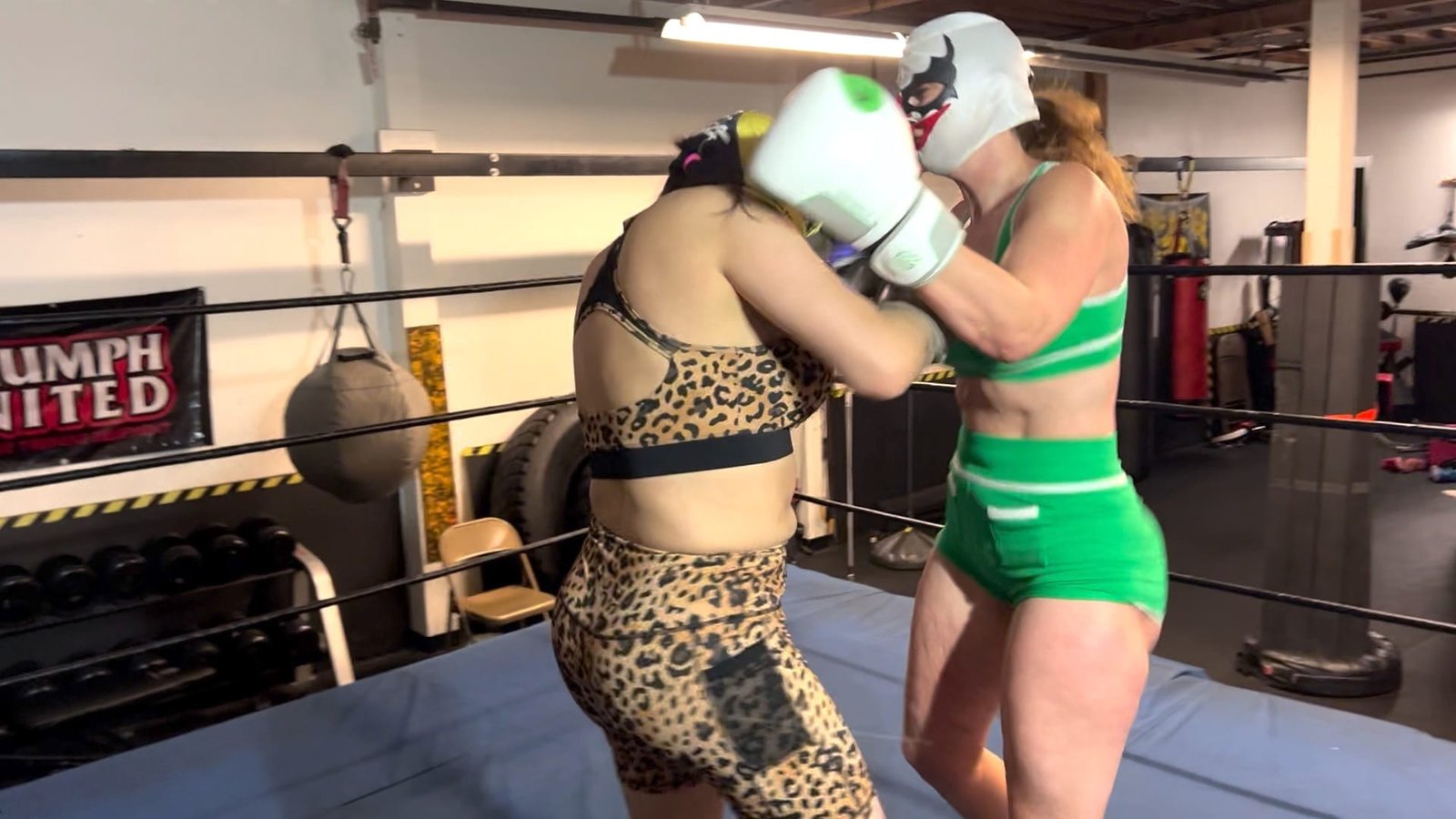 Masked boxers Mariah and Beckie go three rounds, trading punches over and over until one of them gets KO’d!