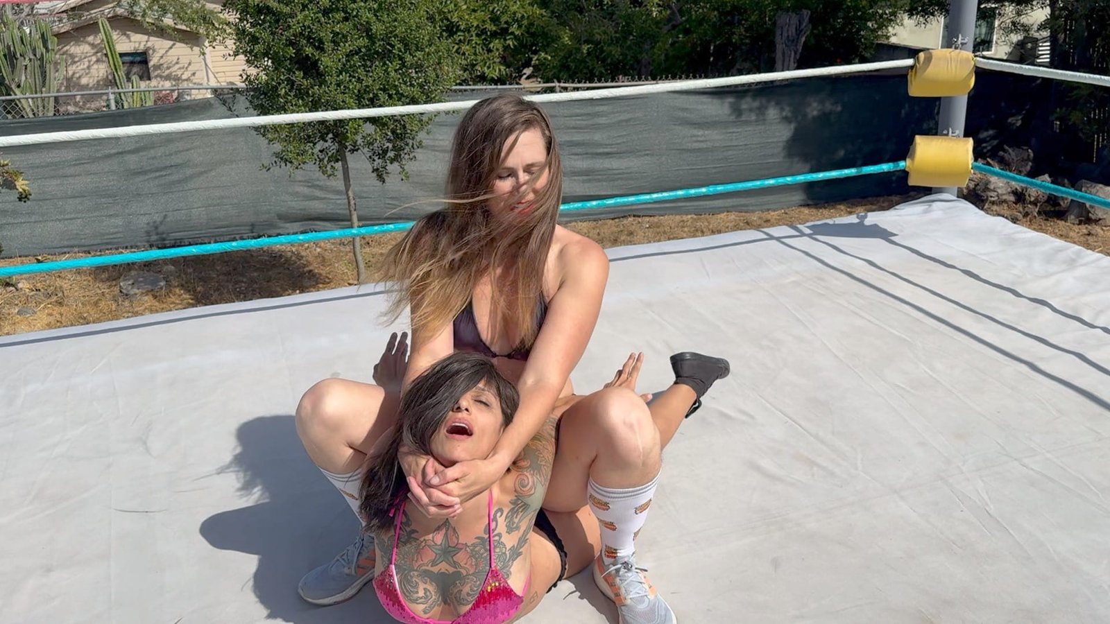 MJ came all the way from Las Vegas to do some butt wrestling in her bikini, but she’s now discovering that this company does a lot of Piledrivers! Sure, she took some Stinkfaces, and a Bronco Buster, a Camel Clutch, and even a Wet Willy!  But she has never experienced Piledrivers like these before! 10 min 3 sec