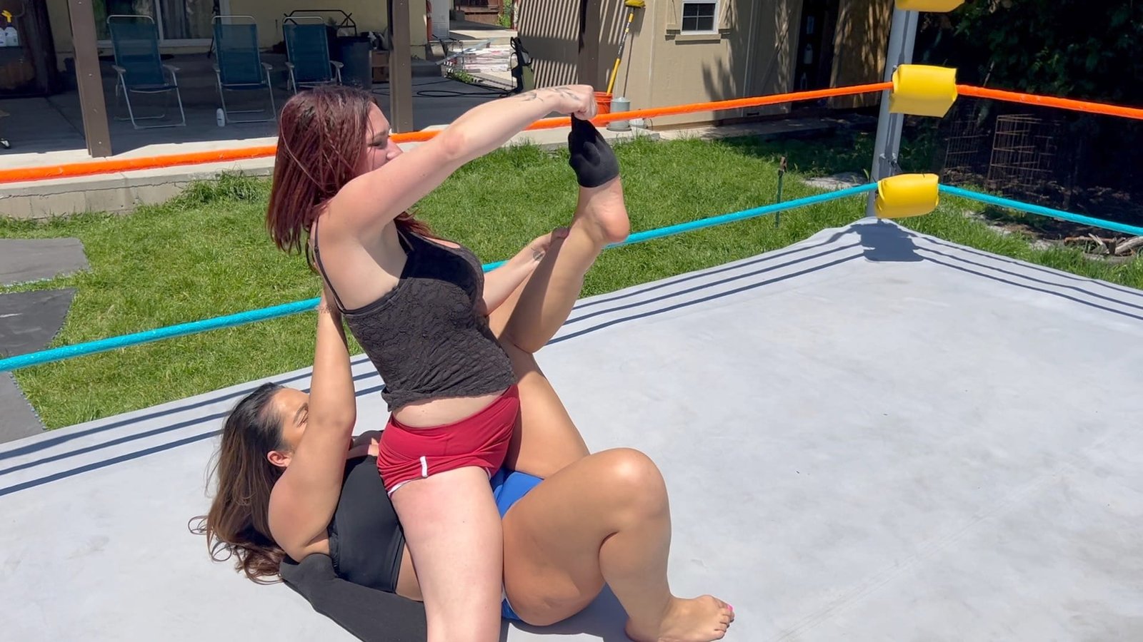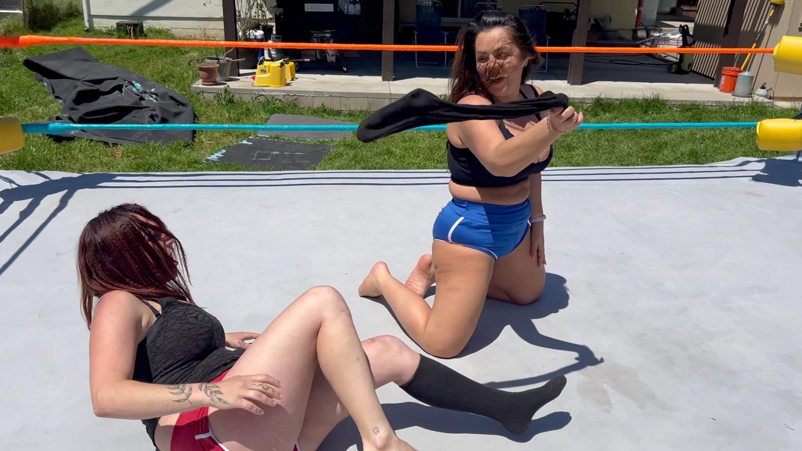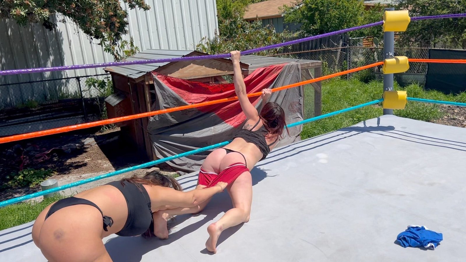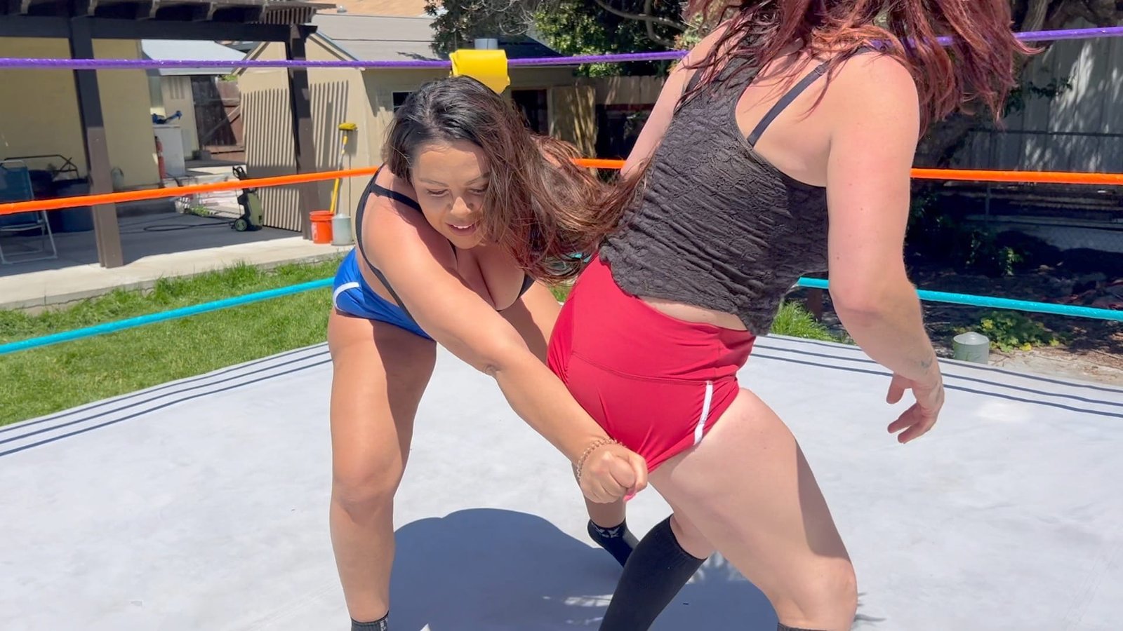 In a traditional Bra & Panties match the first person to lose their clothes and be left only in their bra and panties is the loser.  But at Butt Wrestling Inc one of these competitors will end up completely NAKED!  11 min 4 sec