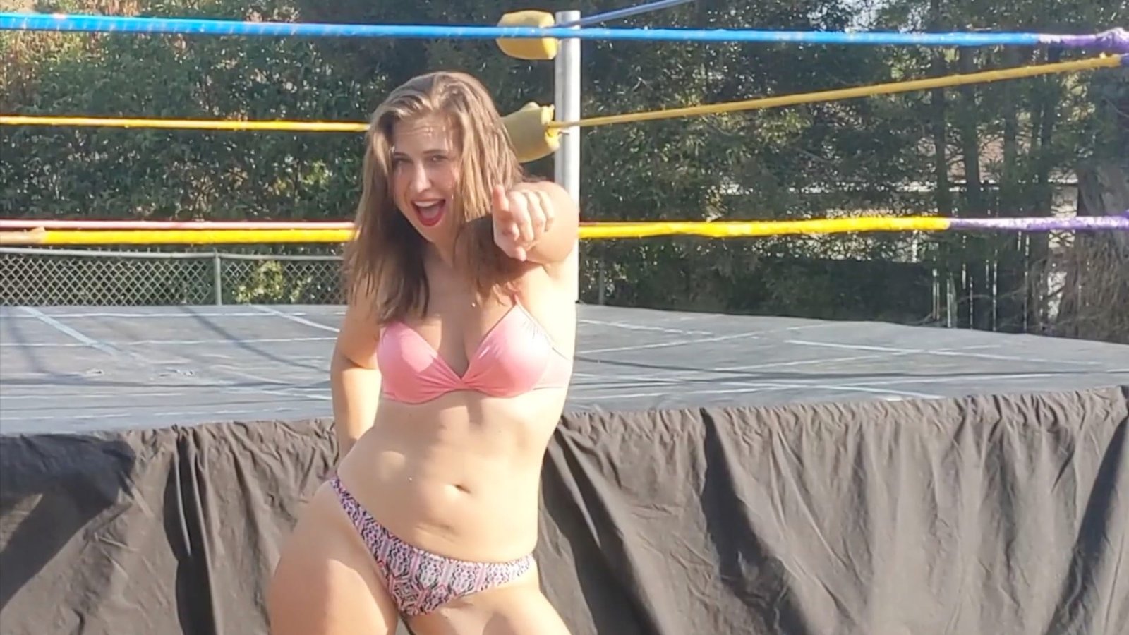 Beckie is having a photoshoot when she is rudely and very aggressively attacked by Stevie, who drags her into the ring and proceeds to give her several devastating piledrivers!  10 min 21 sec