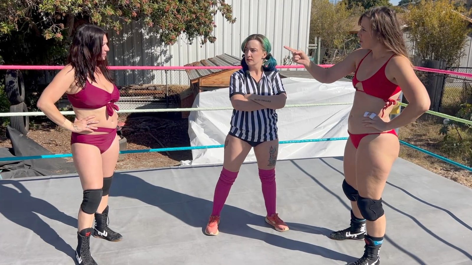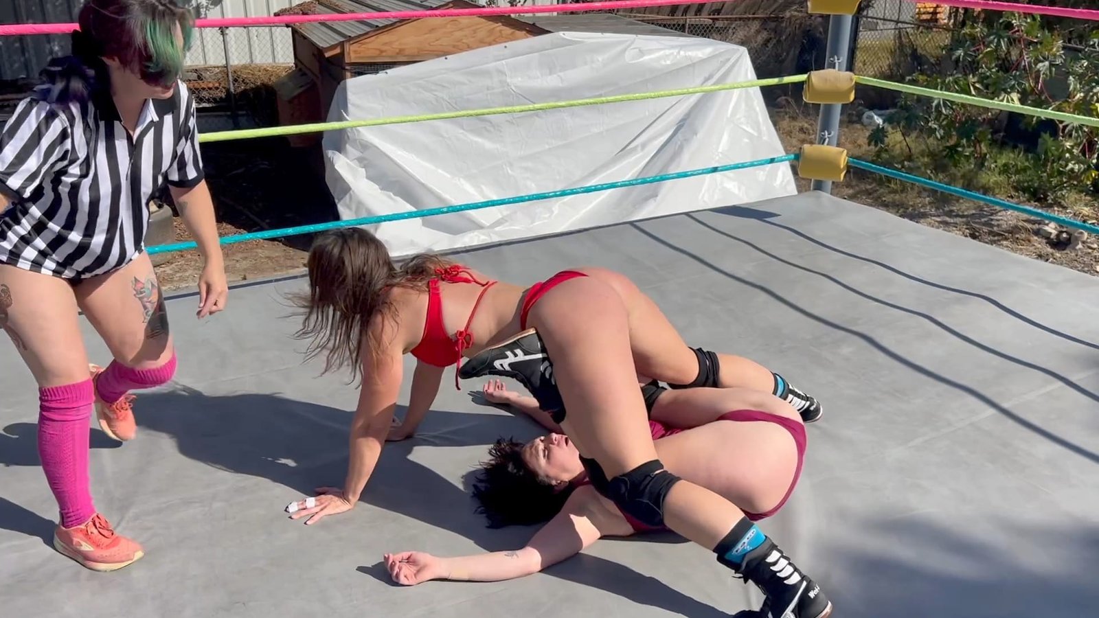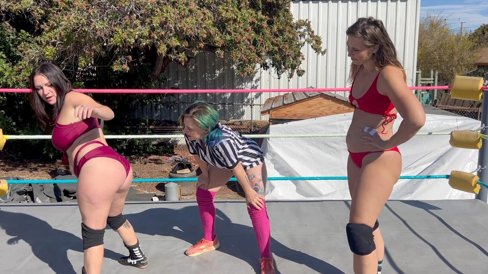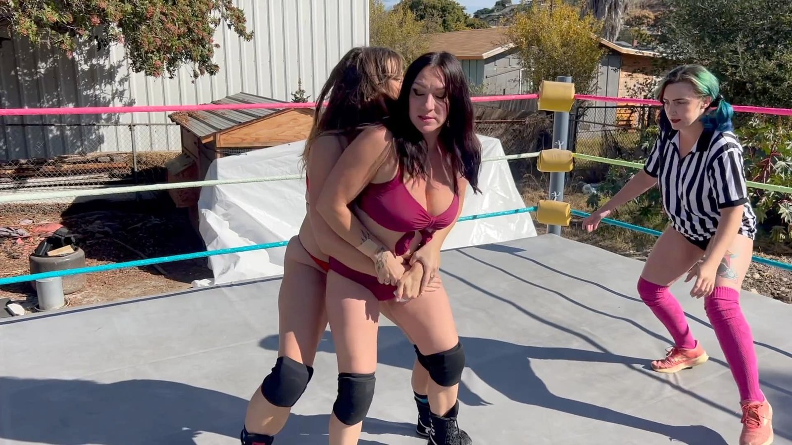 Beckie and Stevie have a match reffed by Morrigan, and everything is going as they typically do when these two wrestle, but suddenly Beckie tells the ref to hold Stevie!  Then Beckie gives her a big Stinkface!  Even more antics ensure when the two team up against poor Stevie including a bare-ass Stinkface! !0 min 4 sec
