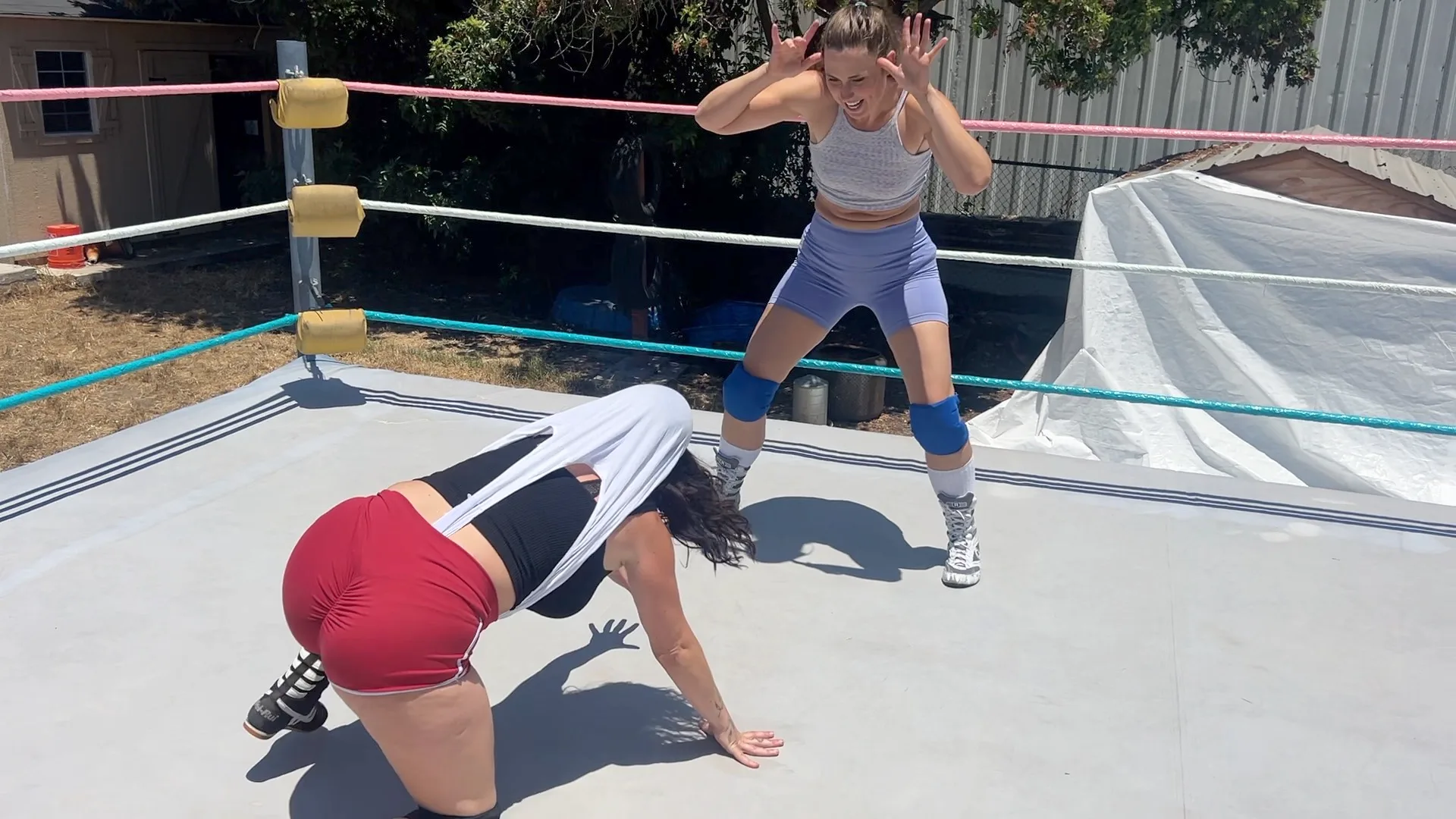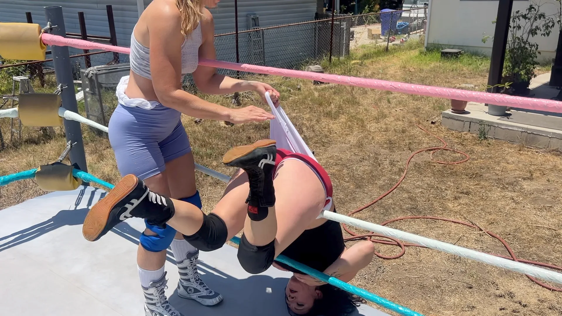 It’s so hot and sweaty out but that doesn’t stop Stevie and Beckie from giving eachother Atomic Wedgies!  Stevie even gives Beckie an Atomic Wedgie and then a Stinkface while Beckie has the underwear pulled over her face!  11 min 11 sec