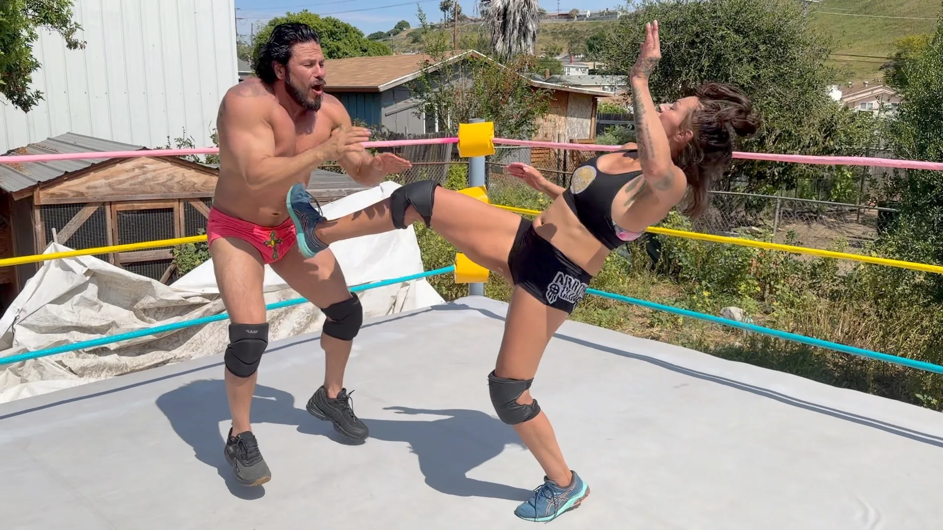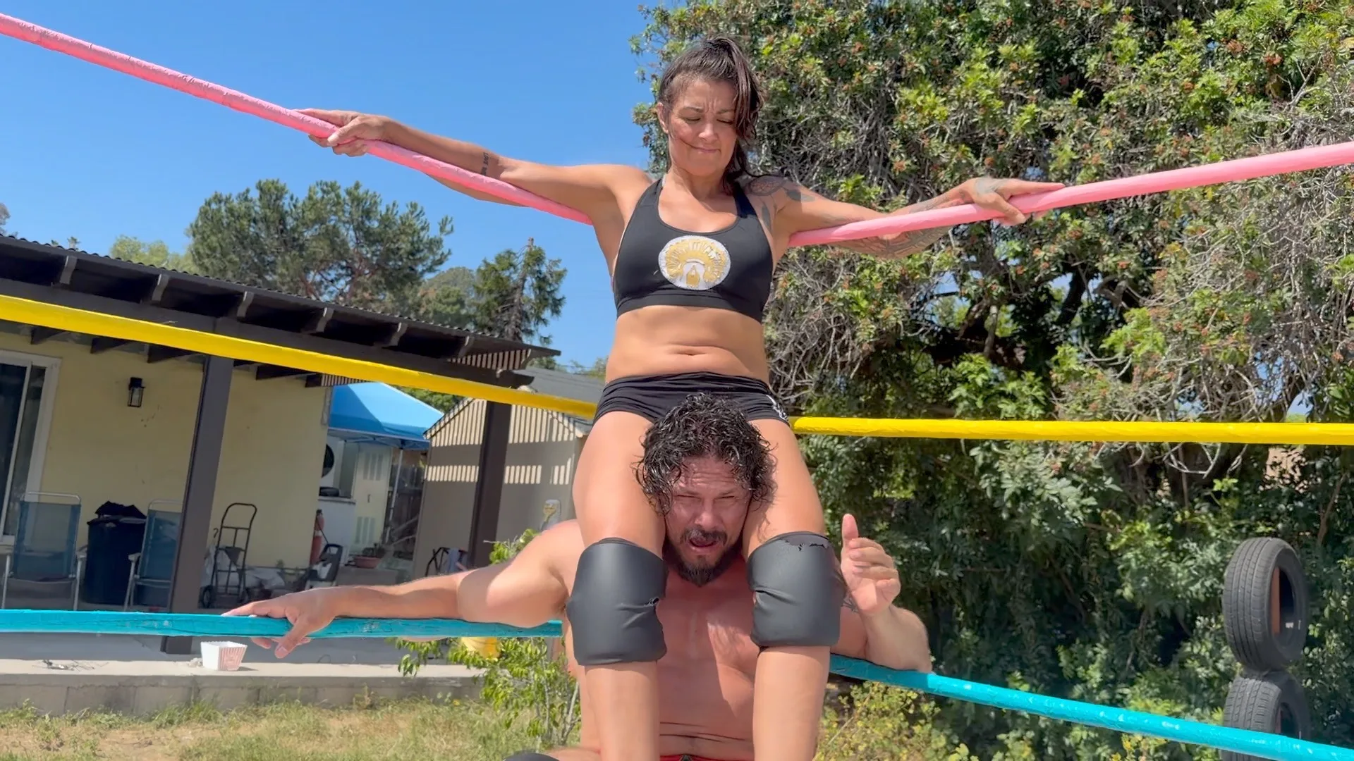 The Big D completely dominates Tito with tight Bronco Busters, punches, submissions, shoulder humping Pedigrees, Piledrivers and just general hip thrusting.  Honestly, there aren’t really words for the ways she dominates him; you’ll just have to watch for yourself! 10 min 24 sec
